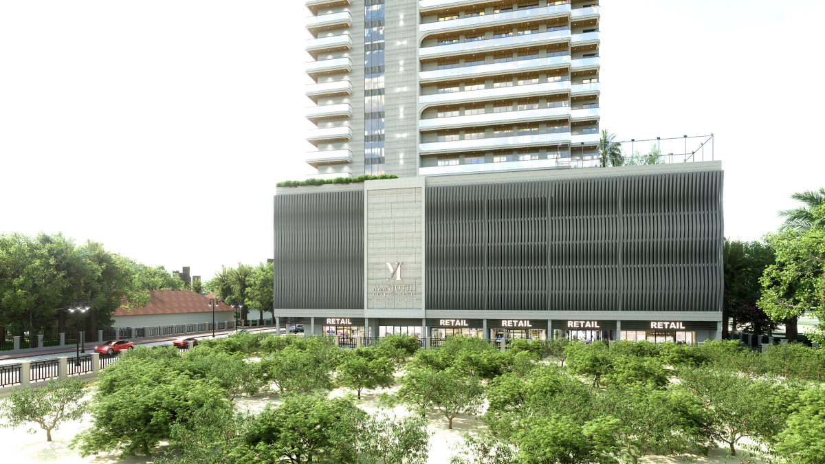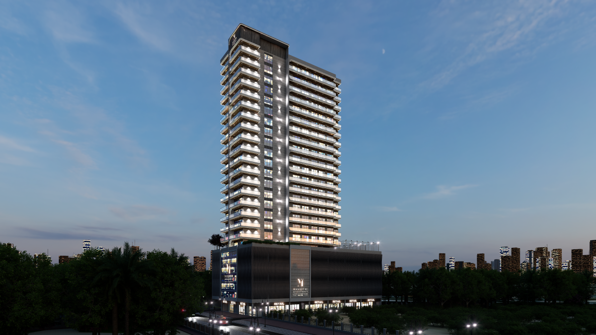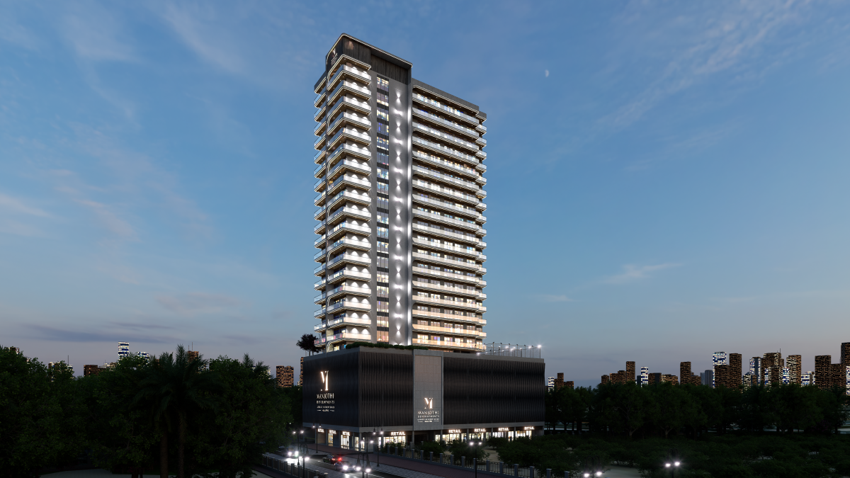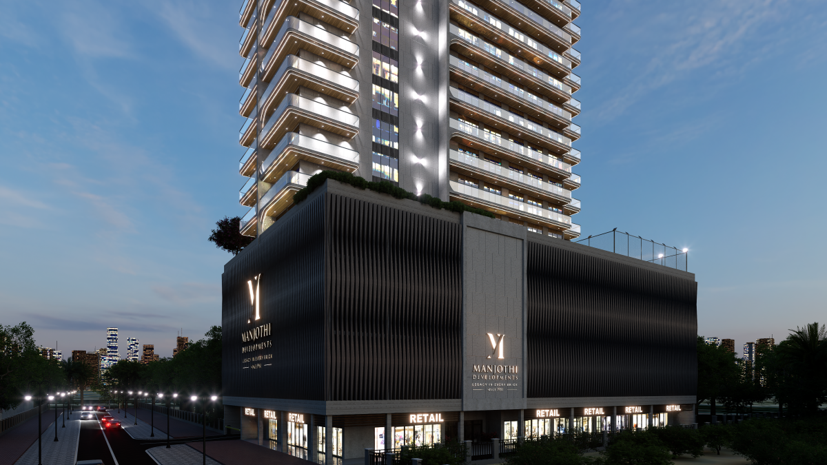 The tower features a collection of thoughtfully designed residential units including studios, one-bedroom, and two-bedroom apartments, along with retail and commercial spaces at the lower levels. Each residence is planned to maximize natural light, usable space, and functional design, making homes comfortable, efficient, and future-ready.