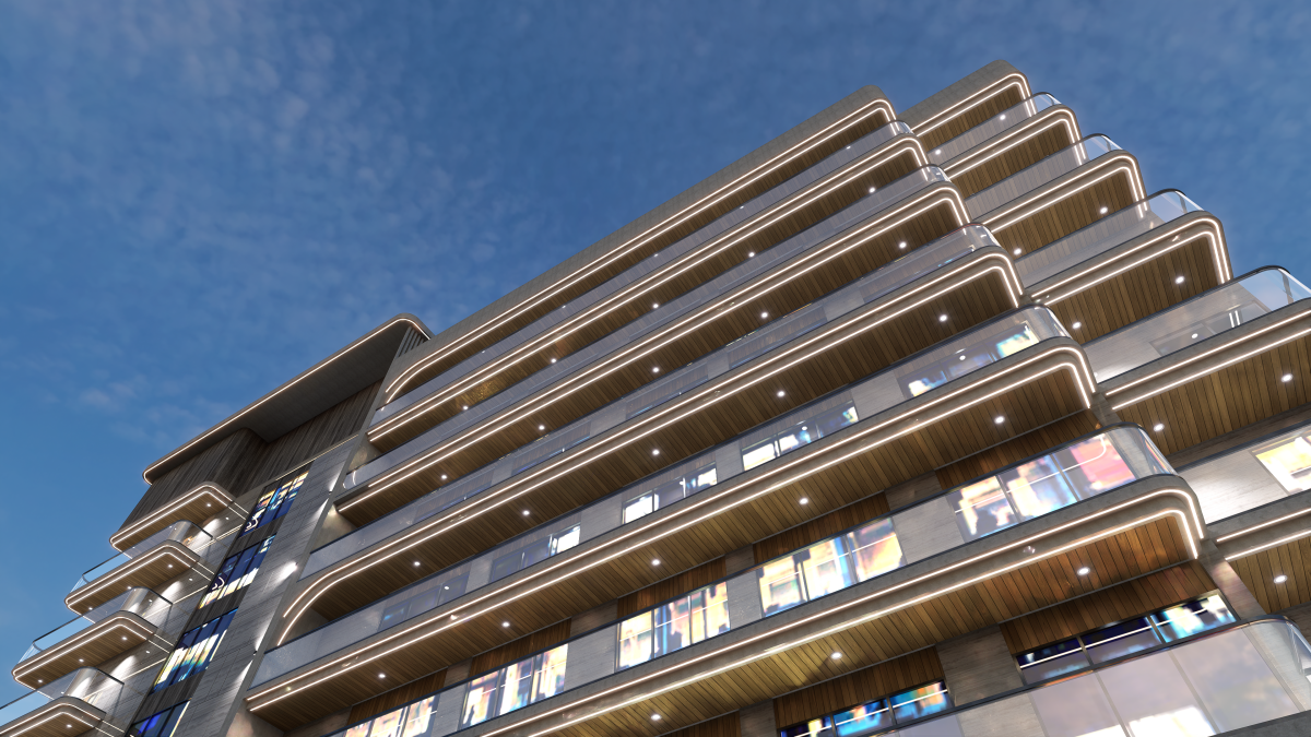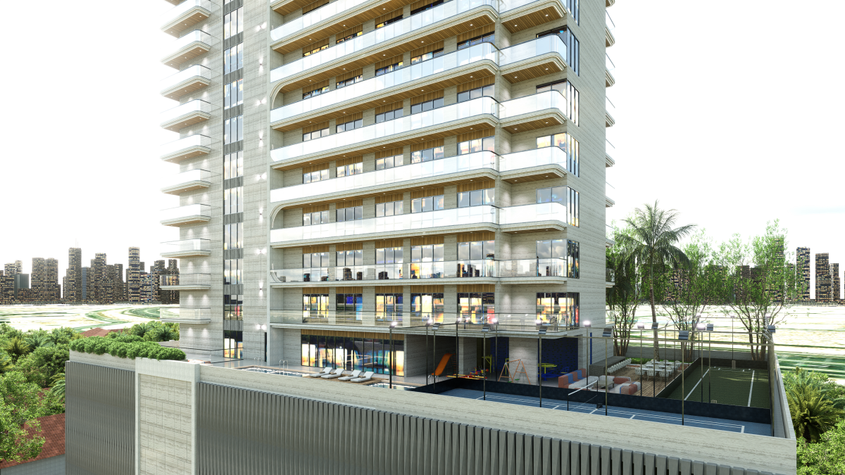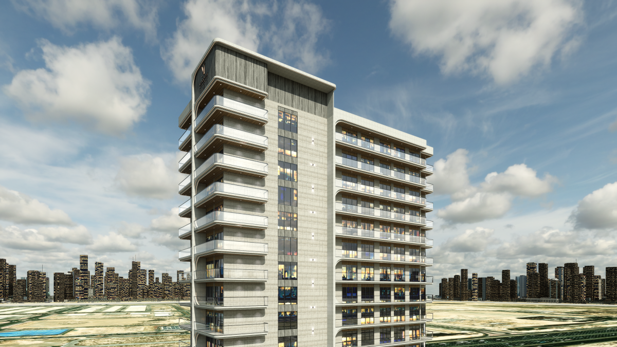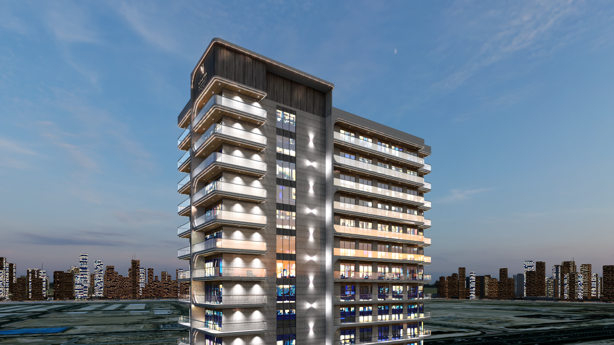 The tower features a collection of thoughtfully designed residential units including studios, one-bedroom, and two-bedroom apartments, along with retail and commercial spaces at the lower levels. Each residence is planned to maximize natural light, usable space, and functional design, making homes comfortable, efficient, and future-ready.