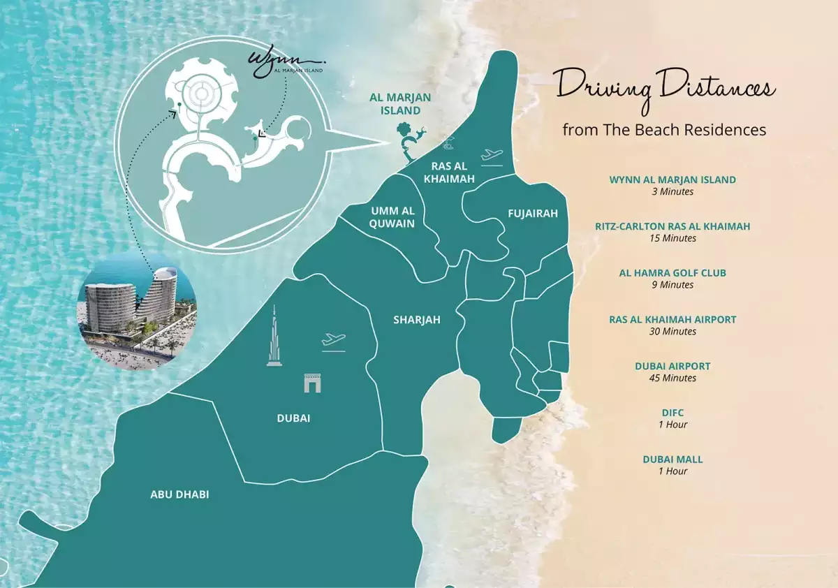 Situated on the immaculate beaches of Al Marjan Island, The Beach Residences offers a distinctive coastal lifestyle in one of the most sought-after areas in the United Arab Emirates. This property offers a tranquil lifestyle with breathtaking sea views, sun-kissed beaches, and beautiful design, right next to the opulent Wynn Al Marjan Island resort.
