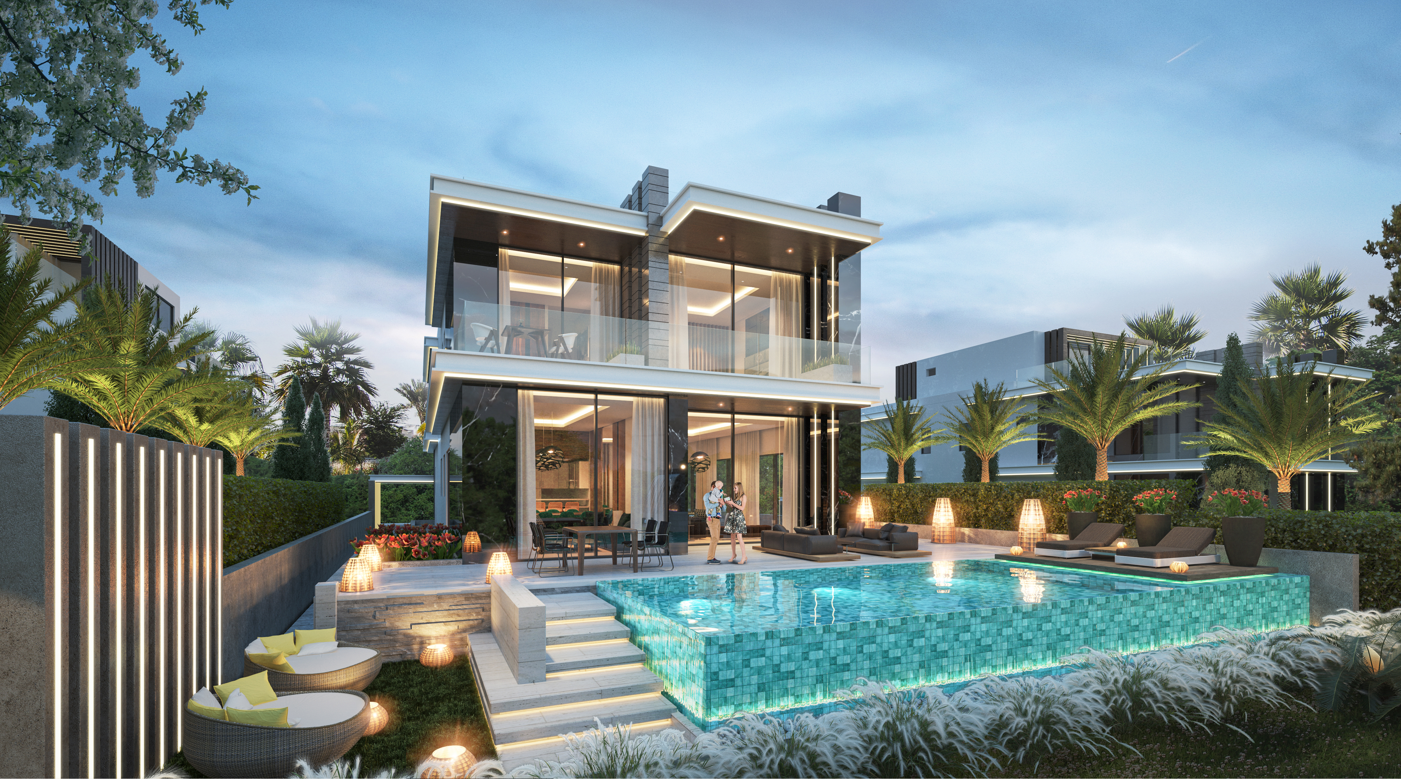In the center of Dubailand, Dubai, DAMAC Lagoons is a master-planned, water-inspired residential community created by DAMAC Properties that aims to replicate the way of life of famous Mediterranean locations. Eight themed clusters, each inspired by a well-known coastal city, make up the community's framework. These clusters are seamlessly connected by waterfront promenades, sparkling lagoons, and recreational areas.