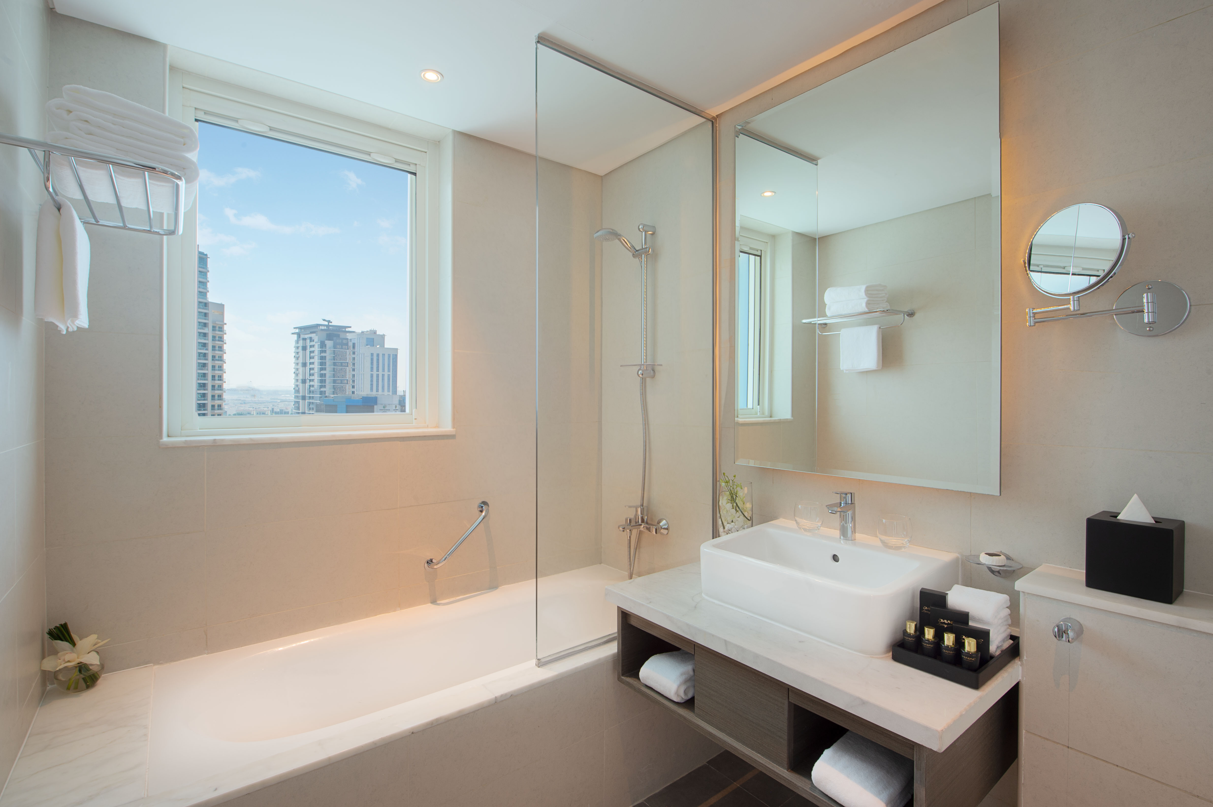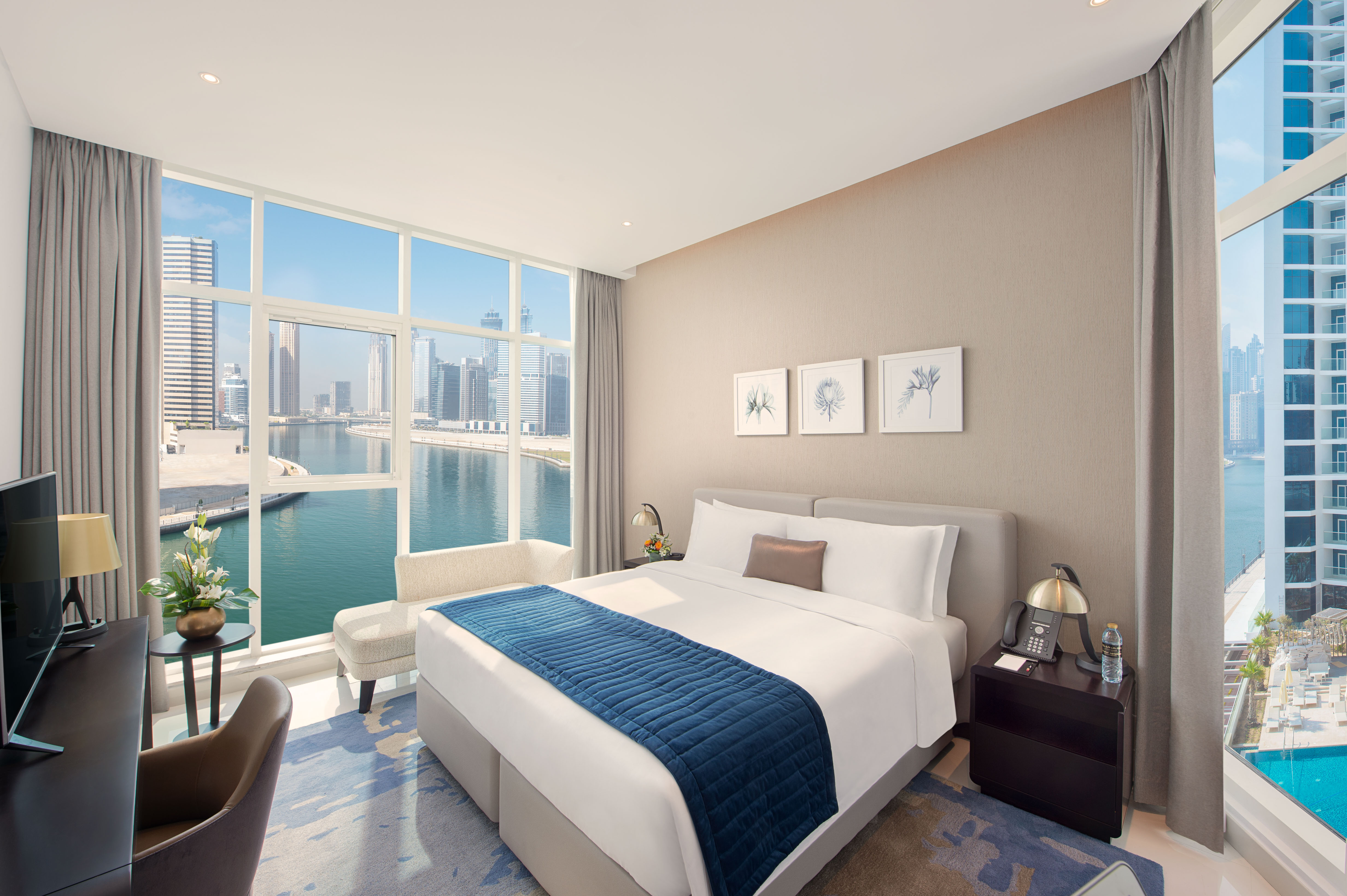 - Every apartment offers stunning views of the Business Bay Area and the Dubai Water Canal.