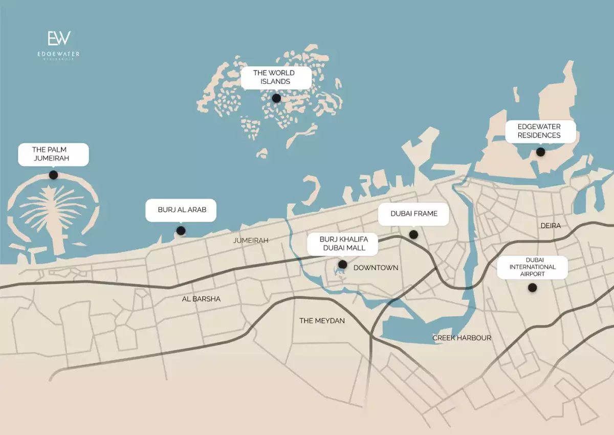 Edgewater Residences is the ideal location for people who value coastal living because it is located in Deira, in the center of the Dubai Islands. The site has a number of benefits: