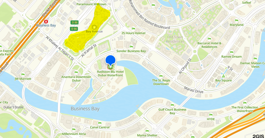 A prime location within Business Bay and close to Sheikh Zayed Road and Business Bay metro station.