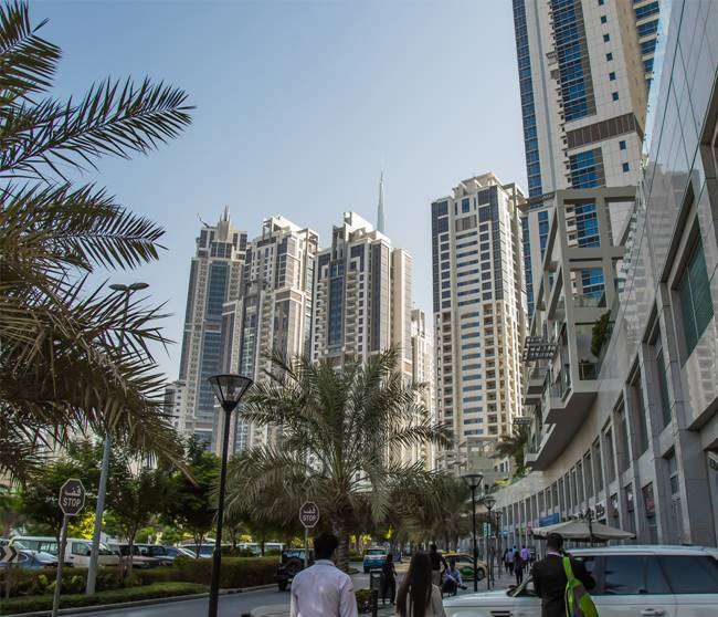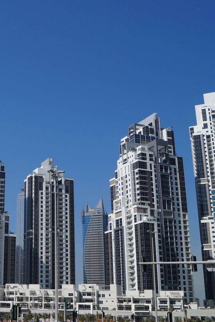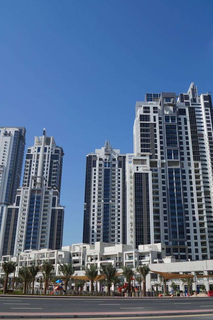These are the first buildings to be completed in Business Bay and are located near its entrance.