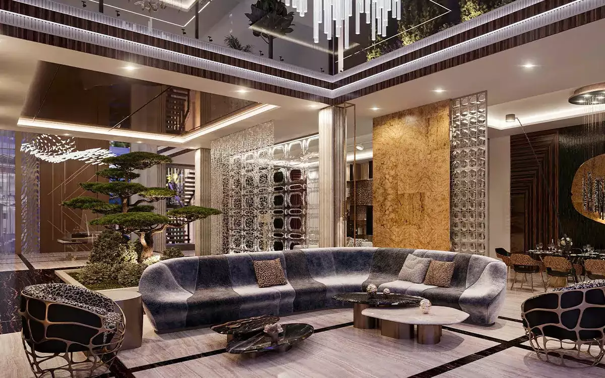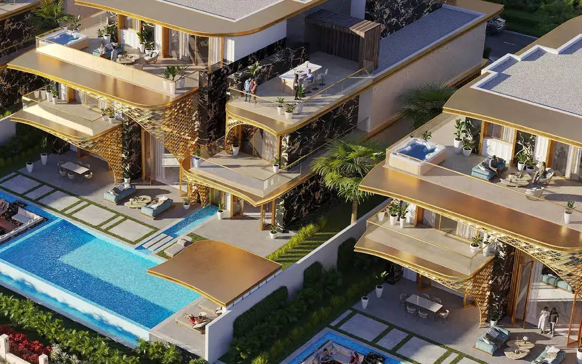 The homes' shiny exteriors make it easy to see the expertise of showcasing the most fashionable styles and profitable items. Inspired by black diamonds and their surroundings, the most expansive, magnificent, and daring homes boast of their grandeur. Residents can lose themselves in the alluring sight of a new universe that we have never given much thought to thanks to the black exteriors with gold details.