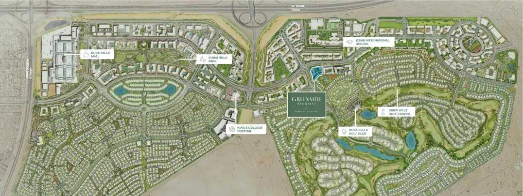 One of Dubai's most sought-after neighborhoods is Dubai Hills Estate, which is known for its stunning landscapes, golf courses, and immaculate lagoons. Within this bustling neighborhood, Greenside Residence is conveniently located and provides:
