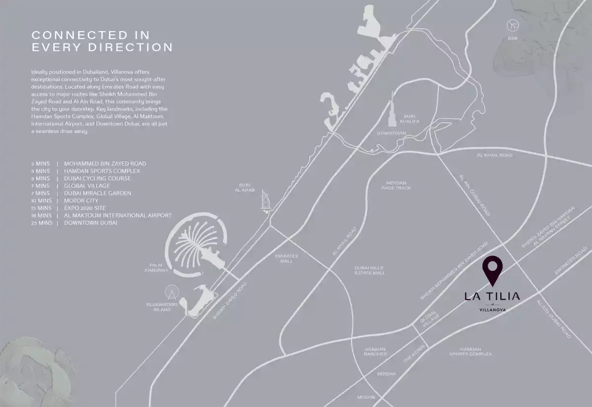The La Tilia Villanova site is well-positioned in Dubailand and provides: