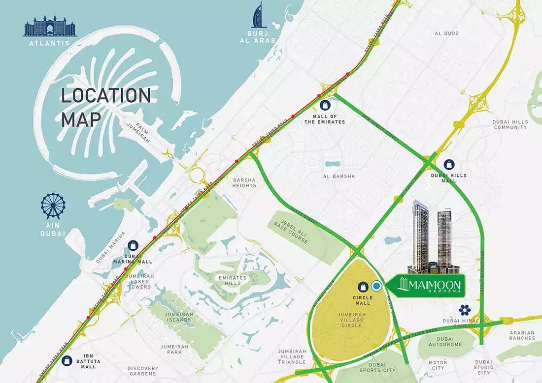 At Fakhruddin Properties' famous Maimoon Gardens, discover a new interpretation of modern life. With its selection of studios and one to three bedroom apartments for sale, this building, which is tucked away in the center of Jumeirah Village Circle (JVC), offers a distinctive fusion of comfort, luxury, and technology.