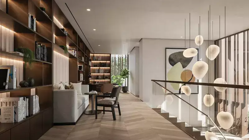 Serenity Mansions creates a captivating and harmonious atmosphere by fusing contemporary elegance with Tilal Al Ghaf's natural surroundings: