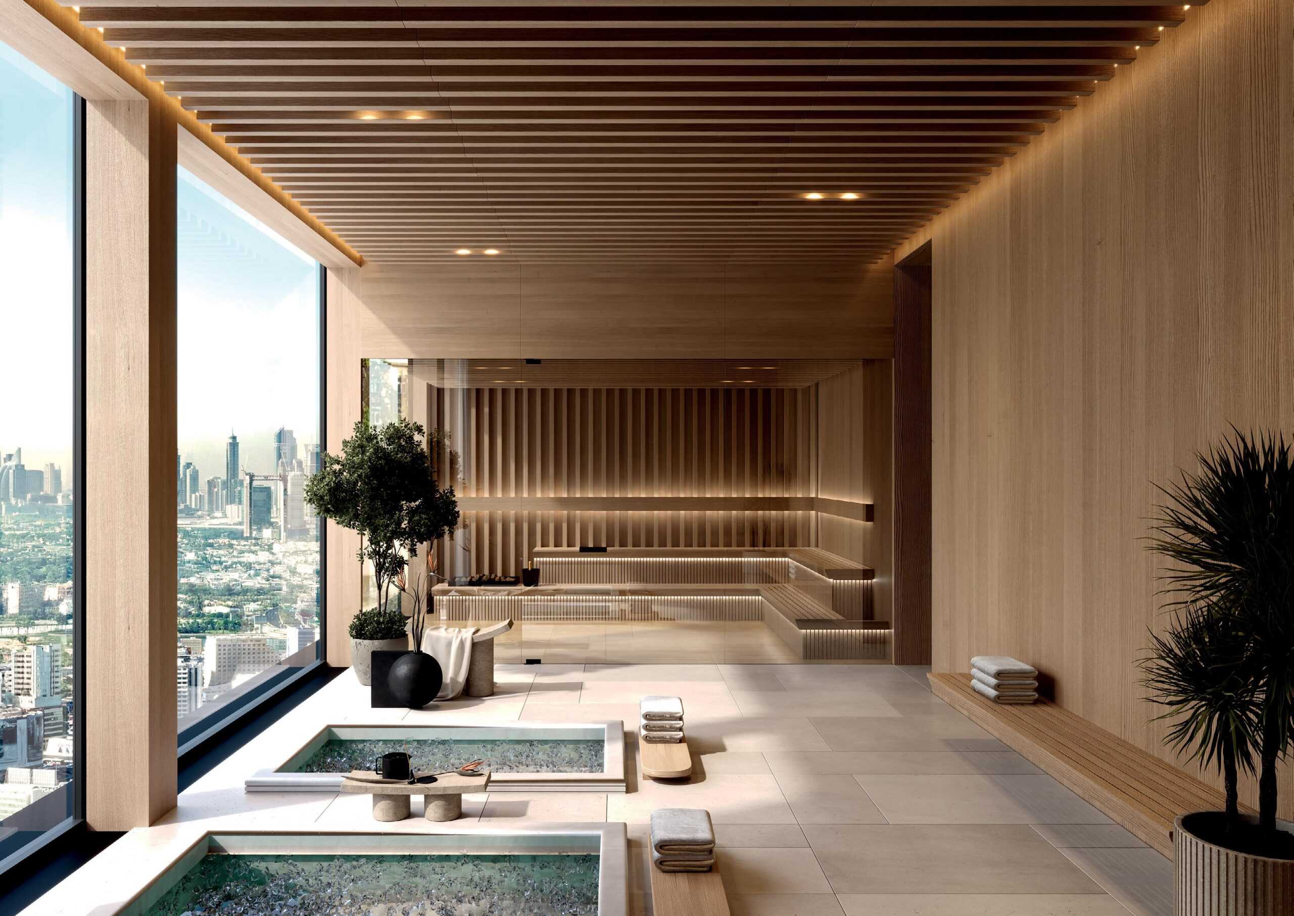 Every apartment has high-end finishes, designer kitchens, floor-to-ceiling windows, and smart home technology.