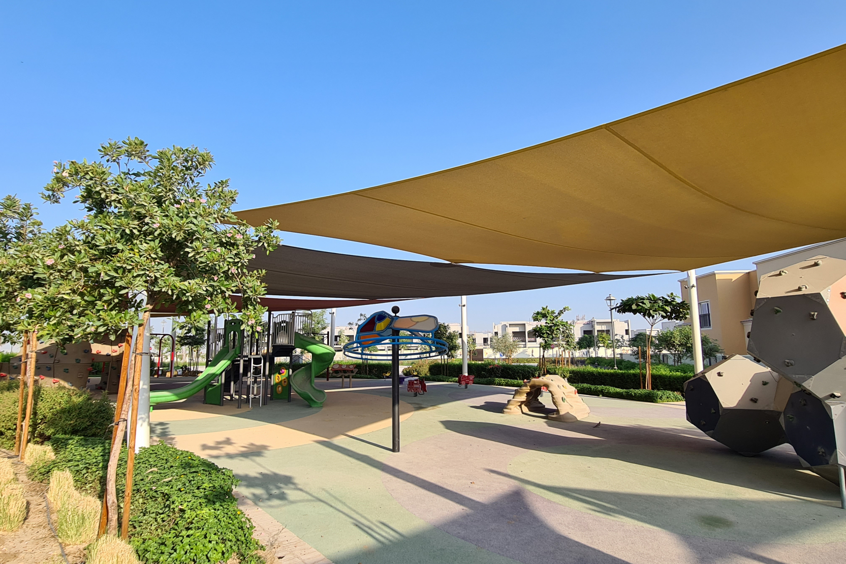 The Mediterranean style houses are designed to be family-friendly and are surrounded by parks with walking and biking trails.