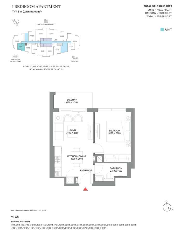 To the west, residents will enjoy stunning views of Downtown Dubai, with its glittering skyscrapers, including the iconic Burj Khalifa. To the east, views of the crystal-clear waterways and lush greenery of the surrounding Hartland community offer a tranquil escape from the urban hustle. Additionally, the Meydan Racecourse and expansive golf courses nearby enhance the scenic beauty, making the views from 350 Riverside Crescent an exceptional feature of the residences.