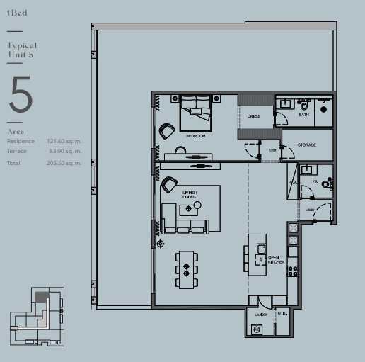 The architecture is a modern design masterpiece that blends the urban setting with powerful and distinctive gestures created by pure lines and delicate geometric adjustments. Airy areas, natural light, and clean lines are provided by the clutter-free, minimalist design, allowing you to enjoy life. The color schemes of the homes, which include beige, grey, brown, and tan hues, are influenced by nature. Cognac leather and walnut accents are used in each area, adding a sense of refinement to the entire scheme.