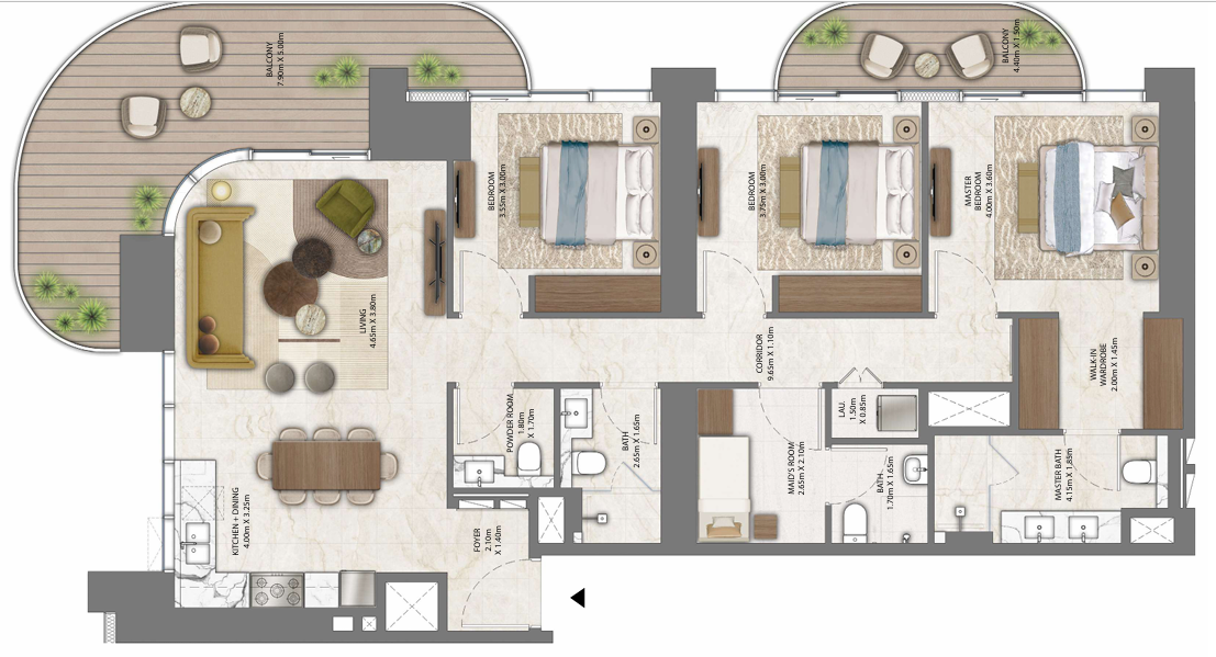 Expansive balconies and deep glazing for natural light