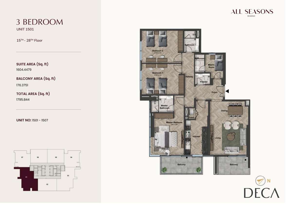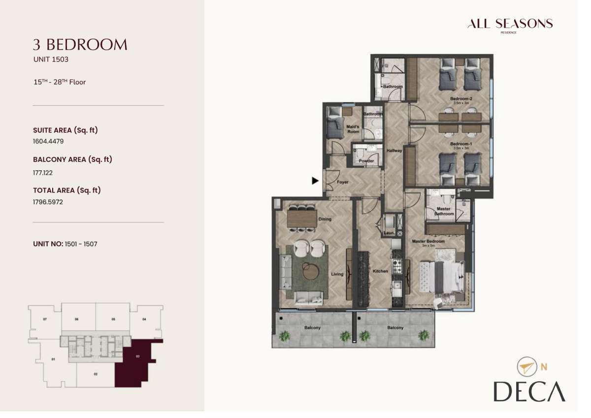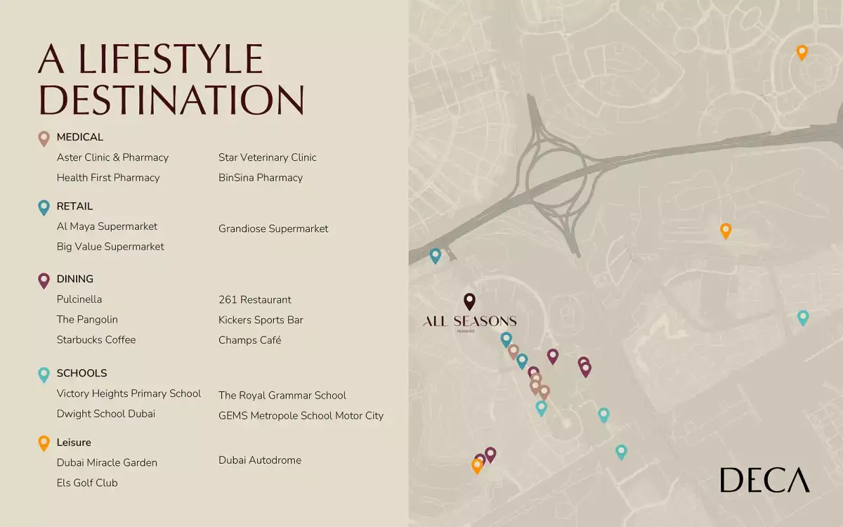 The development features a wide range of premium amenities, including landscaped running trails, state-of-the-art fitness centers, leisure spaces, and community areas designed to encourage interaction and wellbeing. With its modern design, dynamic location, and lifestyle-focused facilities, All Seasons Residence offers a balanced living experience where luxury, wellness, and connectivity come together in one of Dubai’s most desirable communities.
