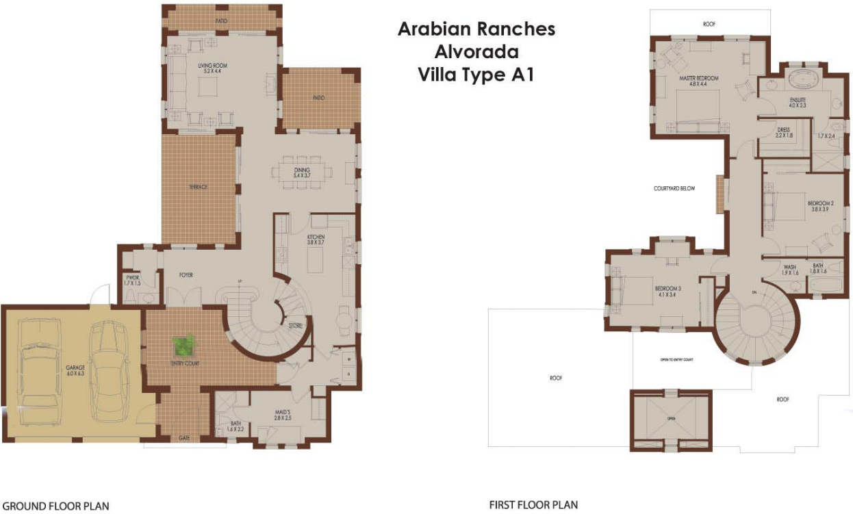 This is TYPE A1 3 Bed Room Villa in Alvorada 2 Which Includes Dining Area,Kitchen ,Living area , Maid Room, 2 Bath room in Ground Floor and 2 Bed Rooms ,1 M.Bedroom ,2 Bath Rooms and In First Floor