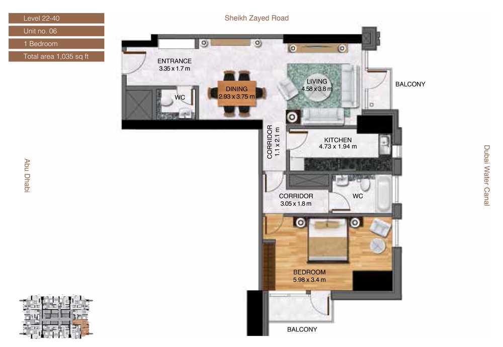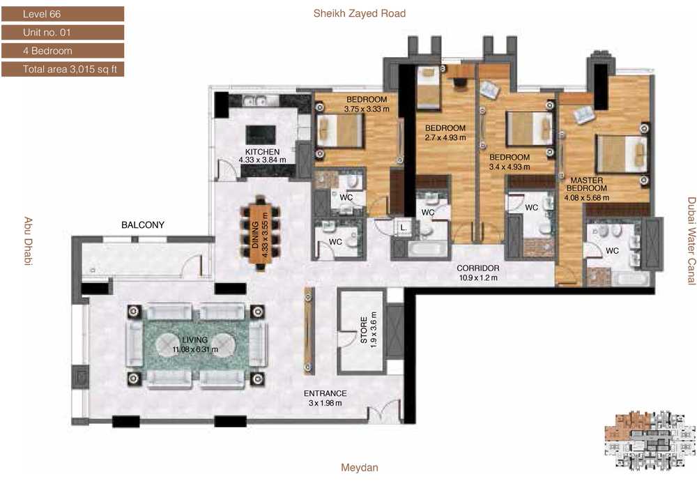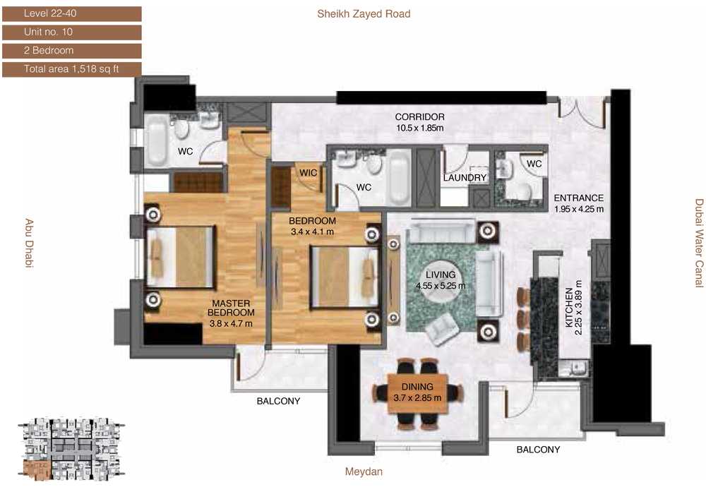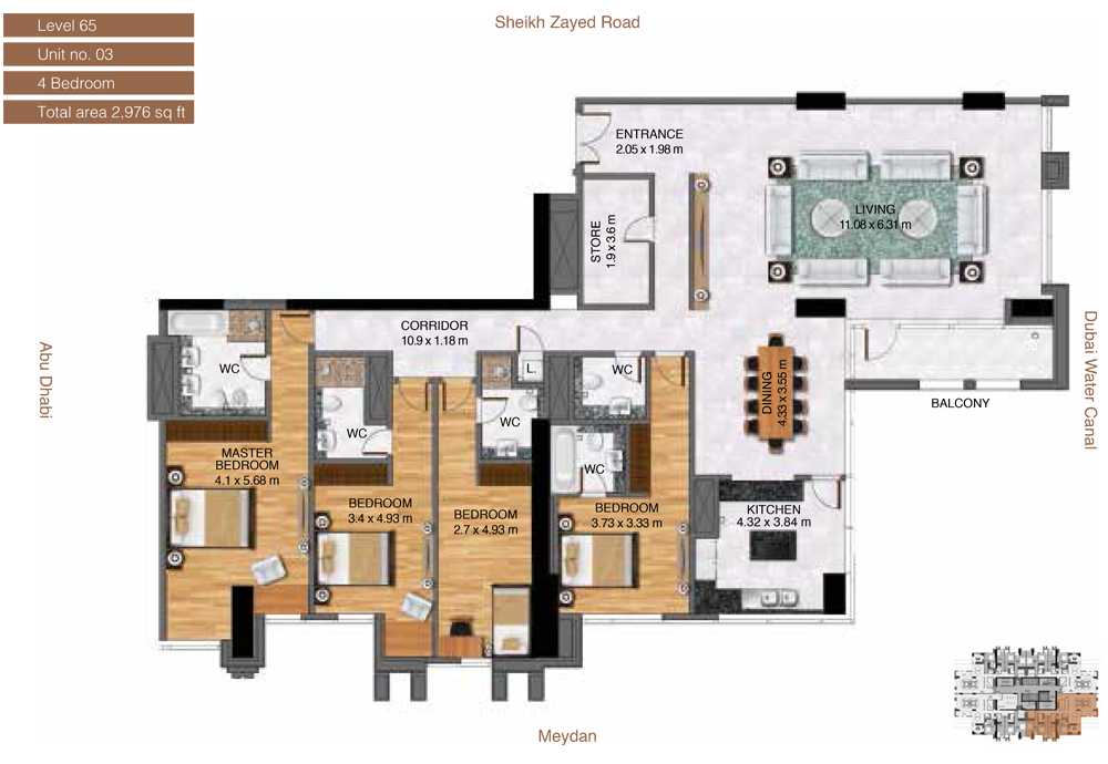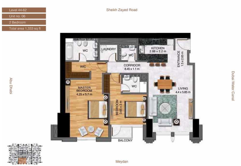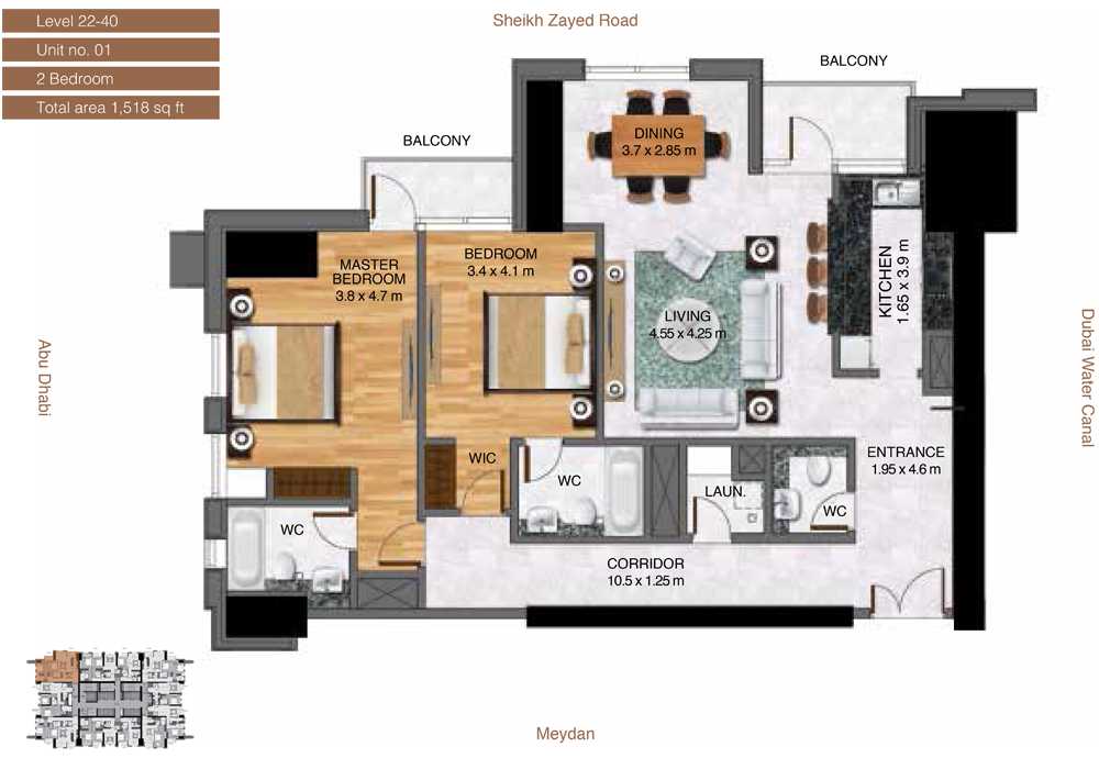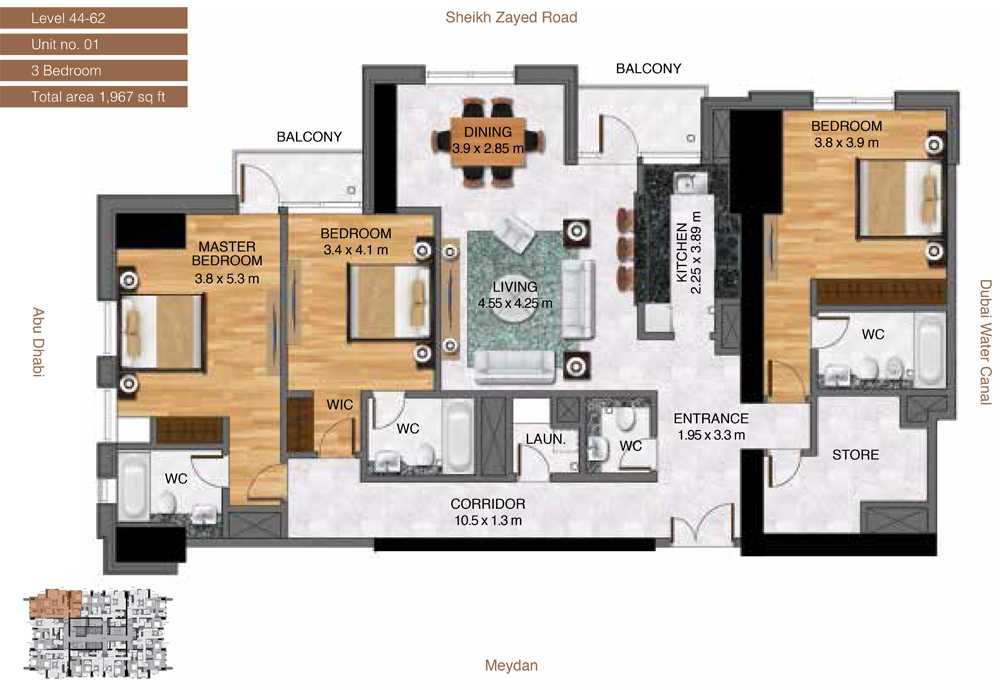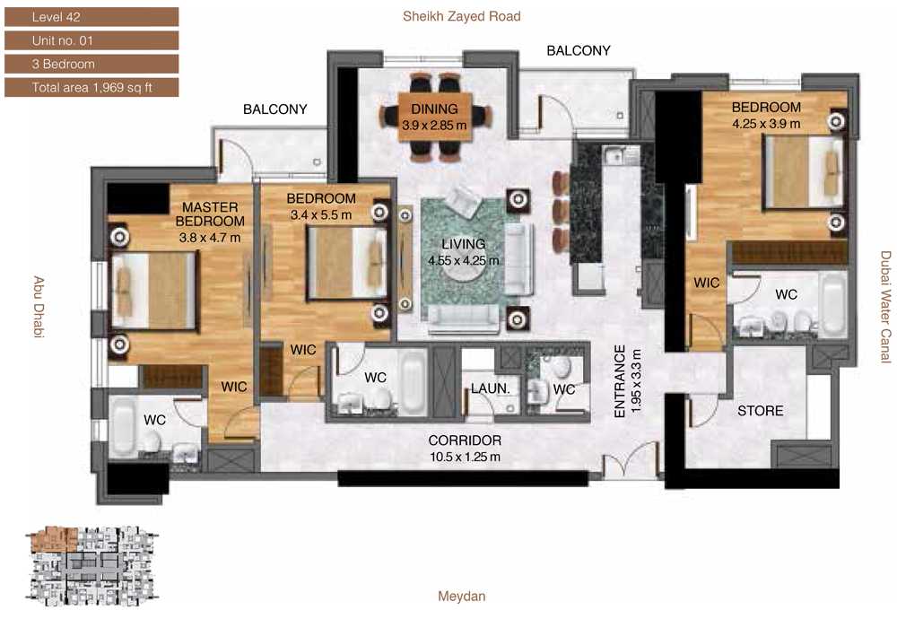 It provides inhabitants with convenient access to well-known locations due to its central location within the community. Use the Sheikh Zayed Road in the area to get the major roadway connector. In a matter of minutes, residents may go from their homes to several important locations, such as Business Bay, Downtown Dubai, Dubai Creek, and the Burj Khalifa. This construction, the third-to-last tower in the Residence Collection, offers 563 luxurious units with upscale designs, including four extremely luxurious penthouses. Additionally, the homeowners have access to the biggest resort-style pool deck in the neighborhood, and providing various recreational and entertainment opportunities. Live in the center of a one-million-square-foot development that allows you to revitalize your lifestyle and have access to top-notch amenities and pleasure right at your fingertips.