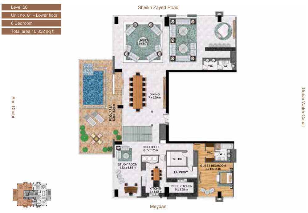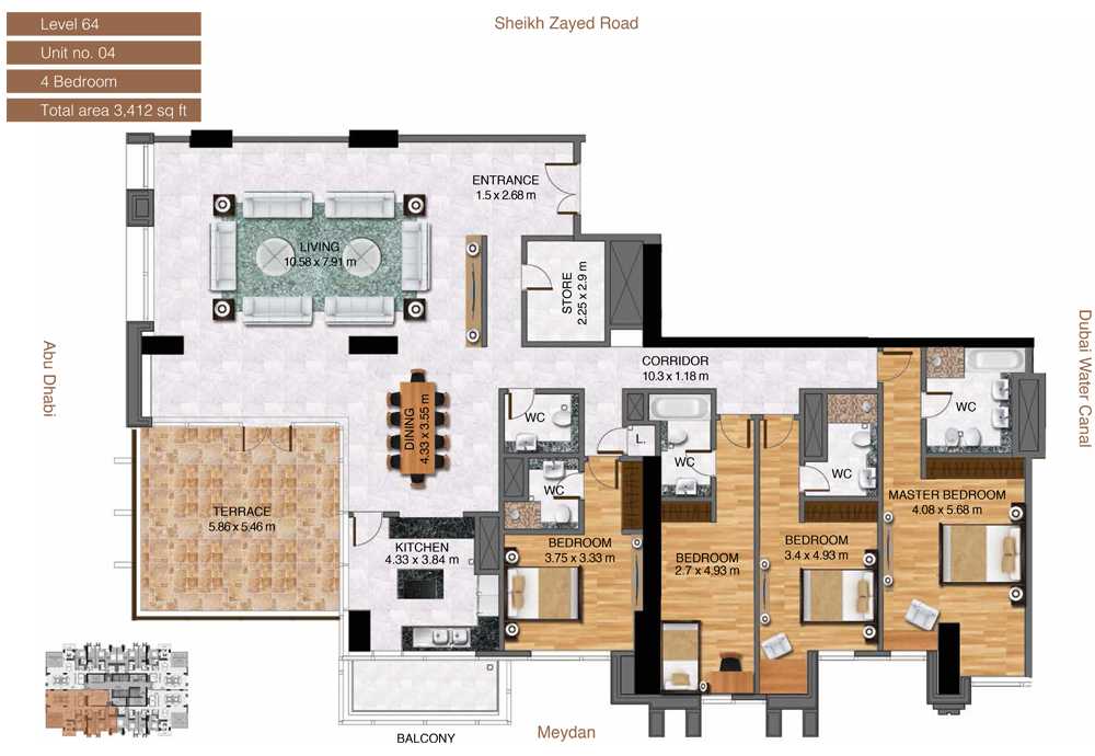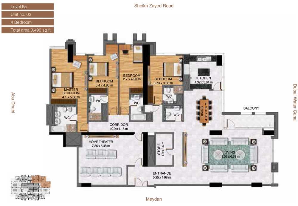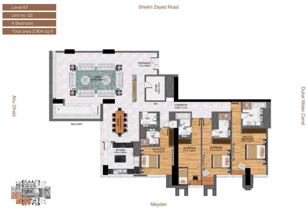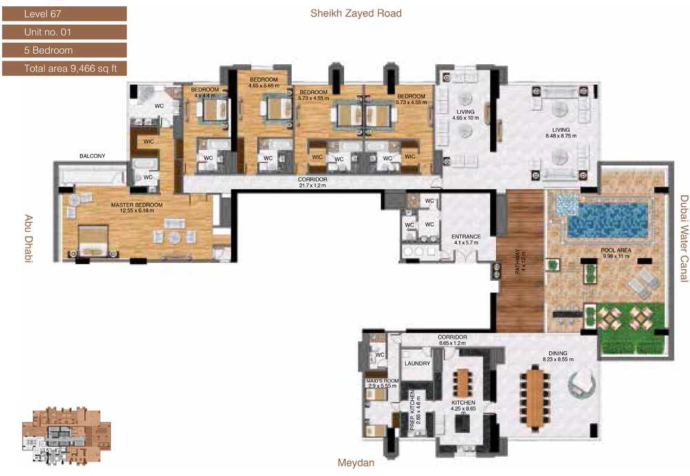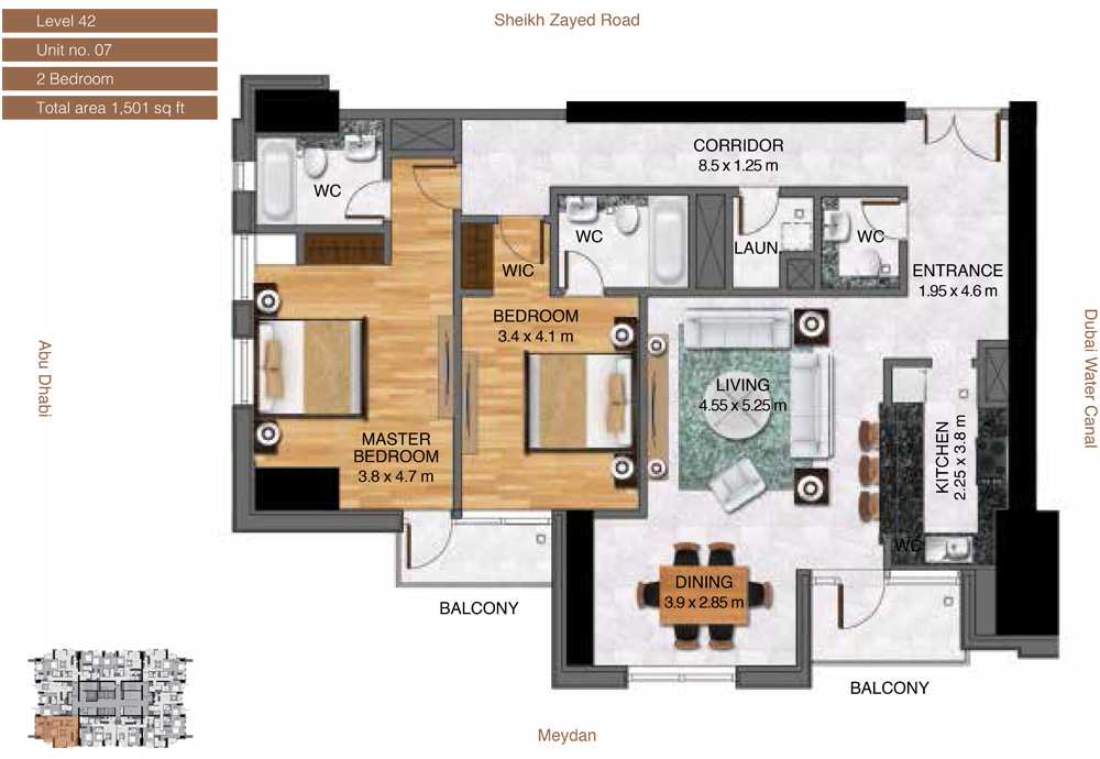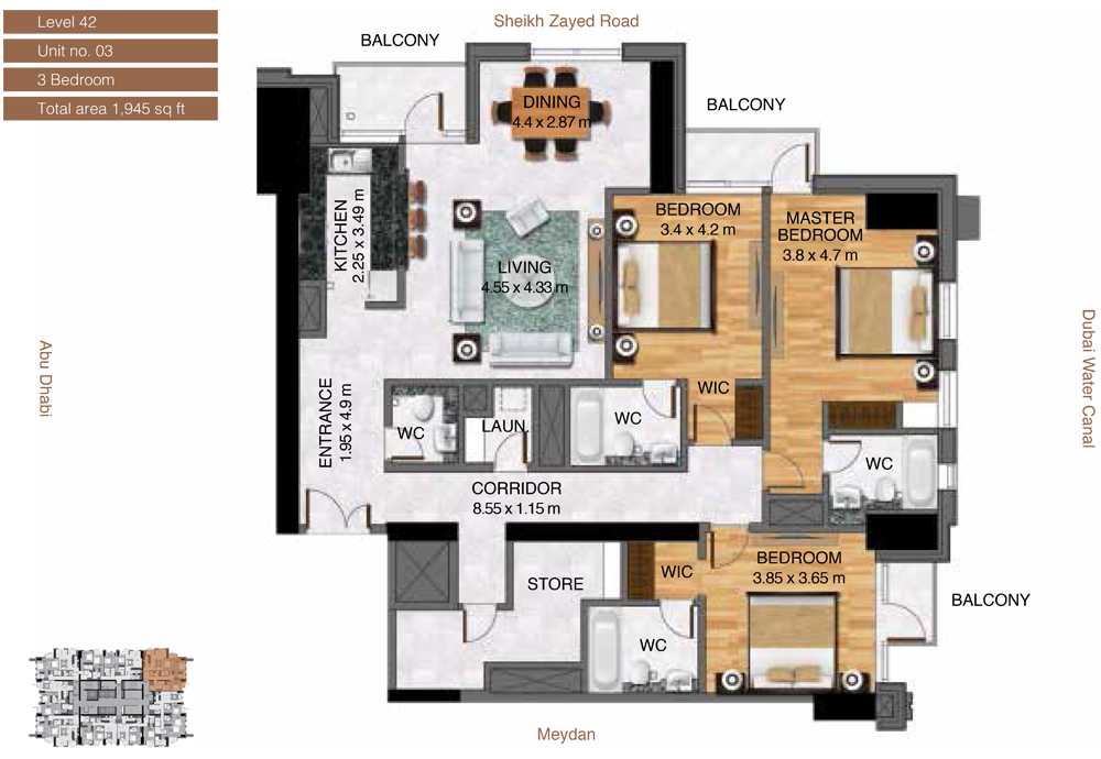 It provides inhabitants with convenient access to well-known locations due to its central location within the community. Use the Sheikh Zayed Road in the area to get the major roadway connector. In a matter of minutes, residents may go from their homes to several important locations, such as Business Bay, Downtown Dubai, Dubai Creek, and the Burj Khalifa. This construction, the third-to-last tower in the Residence Collection, offers 563 luxurious units with upscale designs, including four extremely luxurious penthouses. Additionally, the homeowners have access to the biggest resort-style pool deck in the neighborhood, and providing various recreational and entertainment opportunities. Live in the center of a one-million-square-foot development that allows you to revitalize your lifestyle and have access to top-notch amenities and pleasure right at your fingertips.