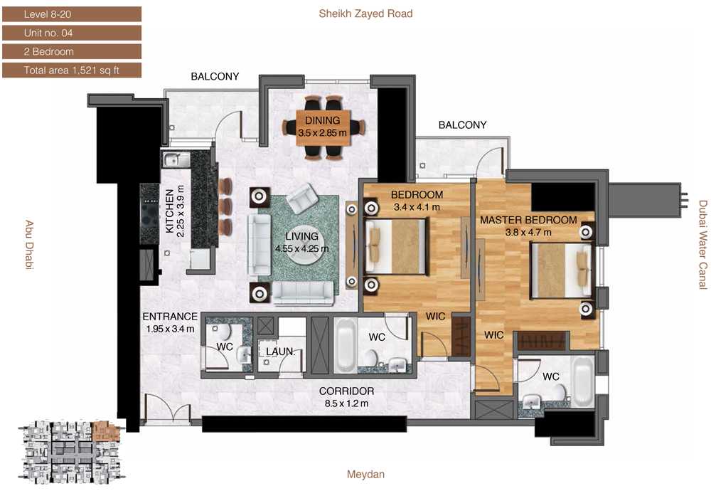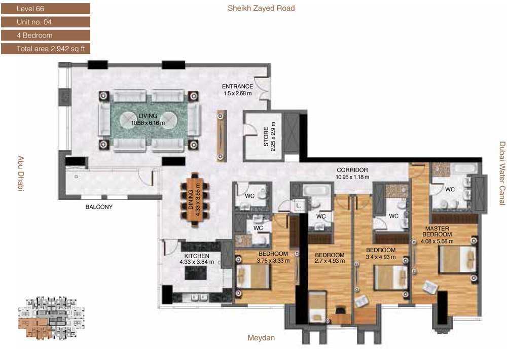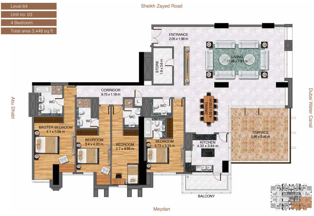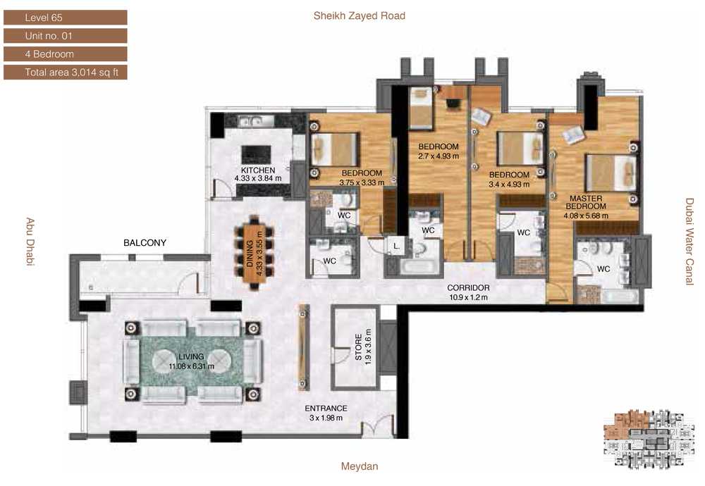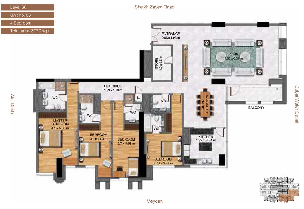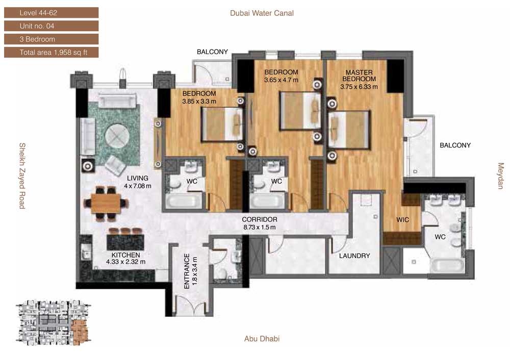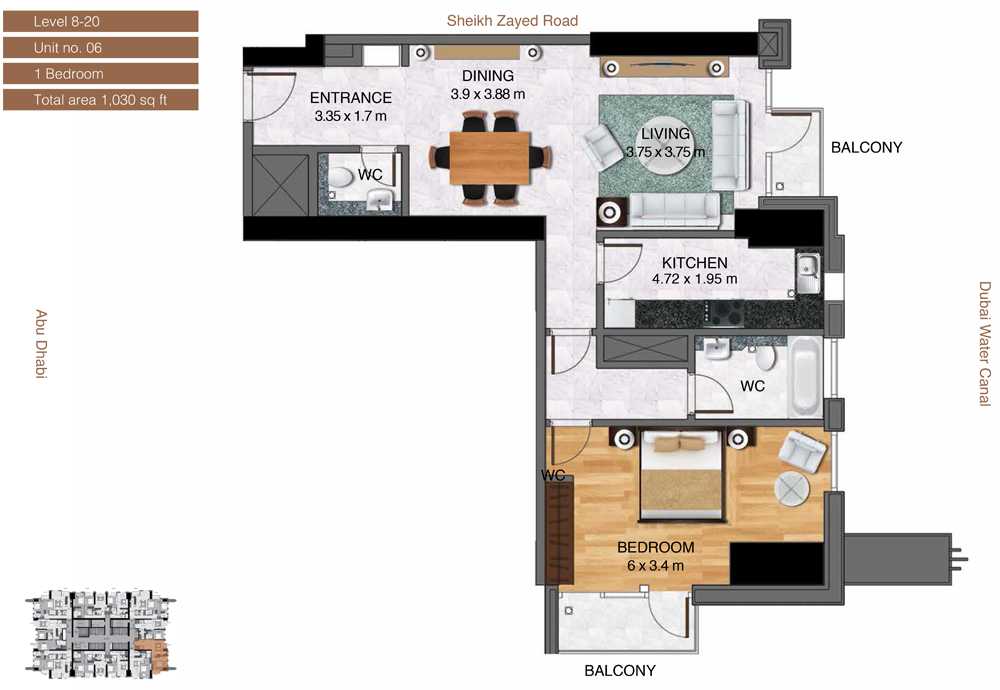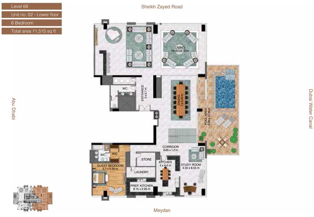 It provides inhabitants with convenient access to well-known locations due to its central location within the community. Use the Sheikh Zayed Road in the area to get the major roadway connector. In a matter of minutes, residents may go from their homes to several important locations, such as Business Bay, Downtown Dubai, Dubai Creek, and the Burj Khalifa. This construction, the third-to-last tower in the Residence Collection, offers 563 luxurious units with upscale designs, including four extremely luxurious penthouses. Additionally, the homeowners have access to the biggest resort-style pool deck in the neighborhood, and providing various recreational and entertainment opportunities. Live in the center of a one-million-square-foot development that allows you to revitalize your lifestyle and have access to top-notch amenities and pleasure right at your fingertips.