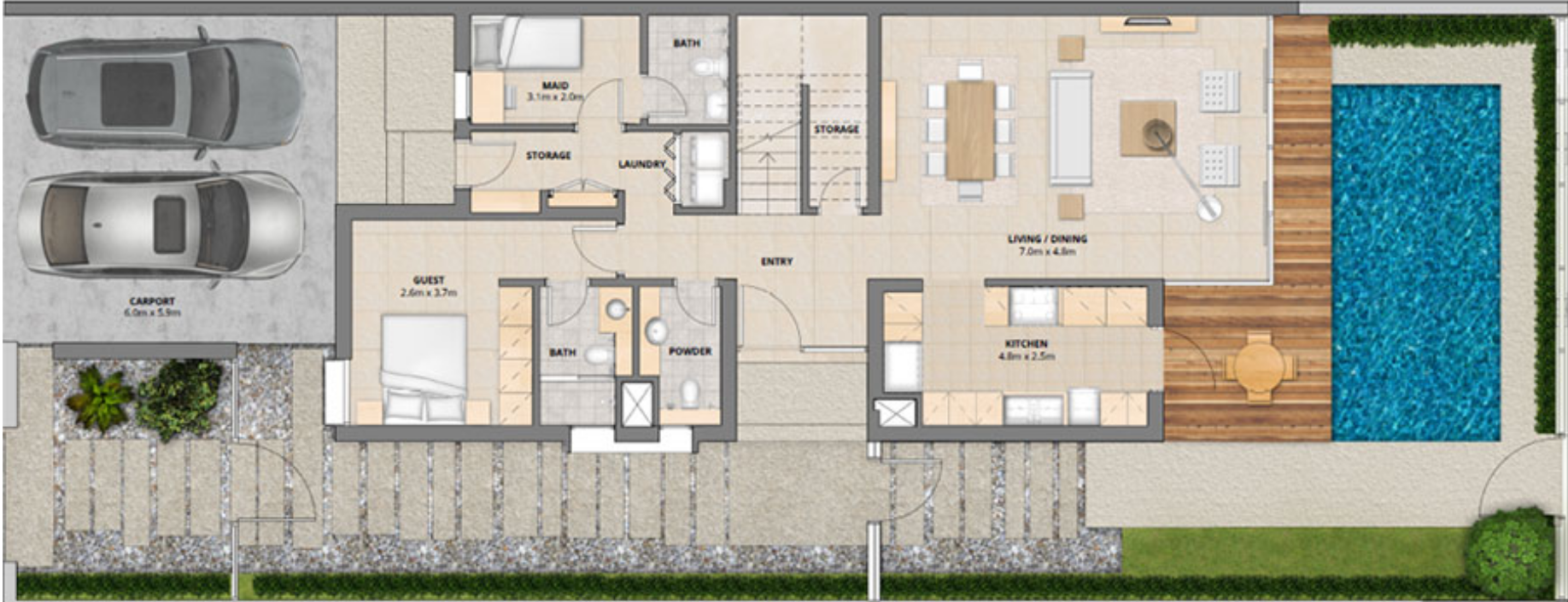 The area contains a mix of three- and four-bedroom townhouses.