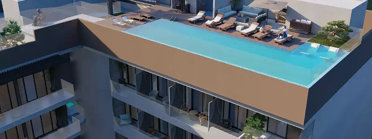 Premium lifestyle amenities including swimming pool, gym, and landscaped areas