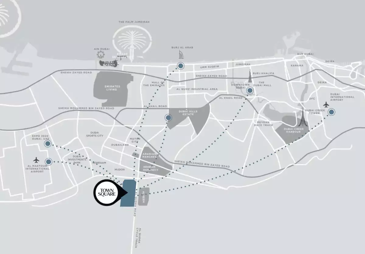 Perfectly positioned in Town Square Dubai, one of the city’s most dynamic neighborhoods, Augusta places residents within reach of everything they need. Iconic destinations such as Dubai Hills Mall, Burj Al Arab, District 2020, and Downtown Dubai are just minutes away, with seamless access to both Dubai International Airport and Al Maktoum International Airport. The community offers 260,000 sqm of lush greenery, 138,000 sqm of Town Square Park, and over 250 retail and dining options, creating a vibrant and self-contained environment.