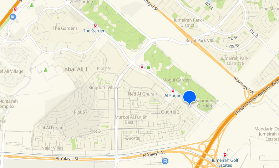 Nakheel created the thriving hamlet of Al-Furjan. There are several different types of villas, apartments, and townhouses in the neighborhood. Jebel Ali Village, Green Community, and Discovery Gardens encircle it.