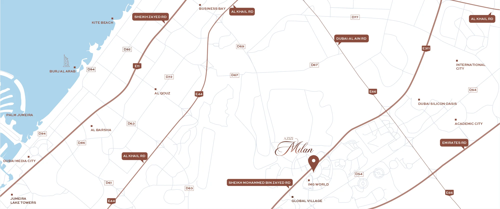 Azizi Milan 30 is built on a vision of sustainable living and intelligent design. The pedestrian-friendly layout, reduced traffic zones, and efficient navigation systems contribute to a safe and stress-free environment.