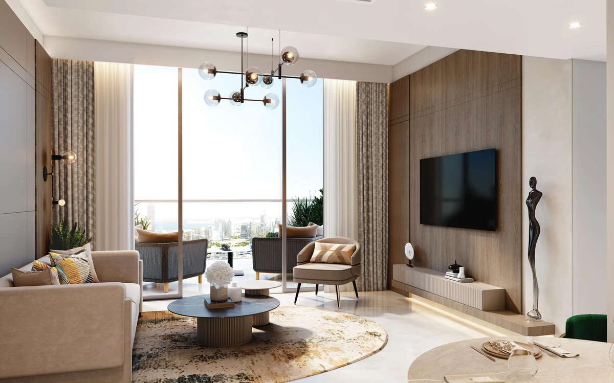 Upon arrival, residents are welcomed by beautifully landscaped green spaces that flow seamlessly into the architecture, offering a calm and peaceful atmosphere. The varying building heights are not just aesthetically appealing, they also ensure maximum sunlight, ventilation, and panoramic views of the Dubailand skyline and lush inner gardens.