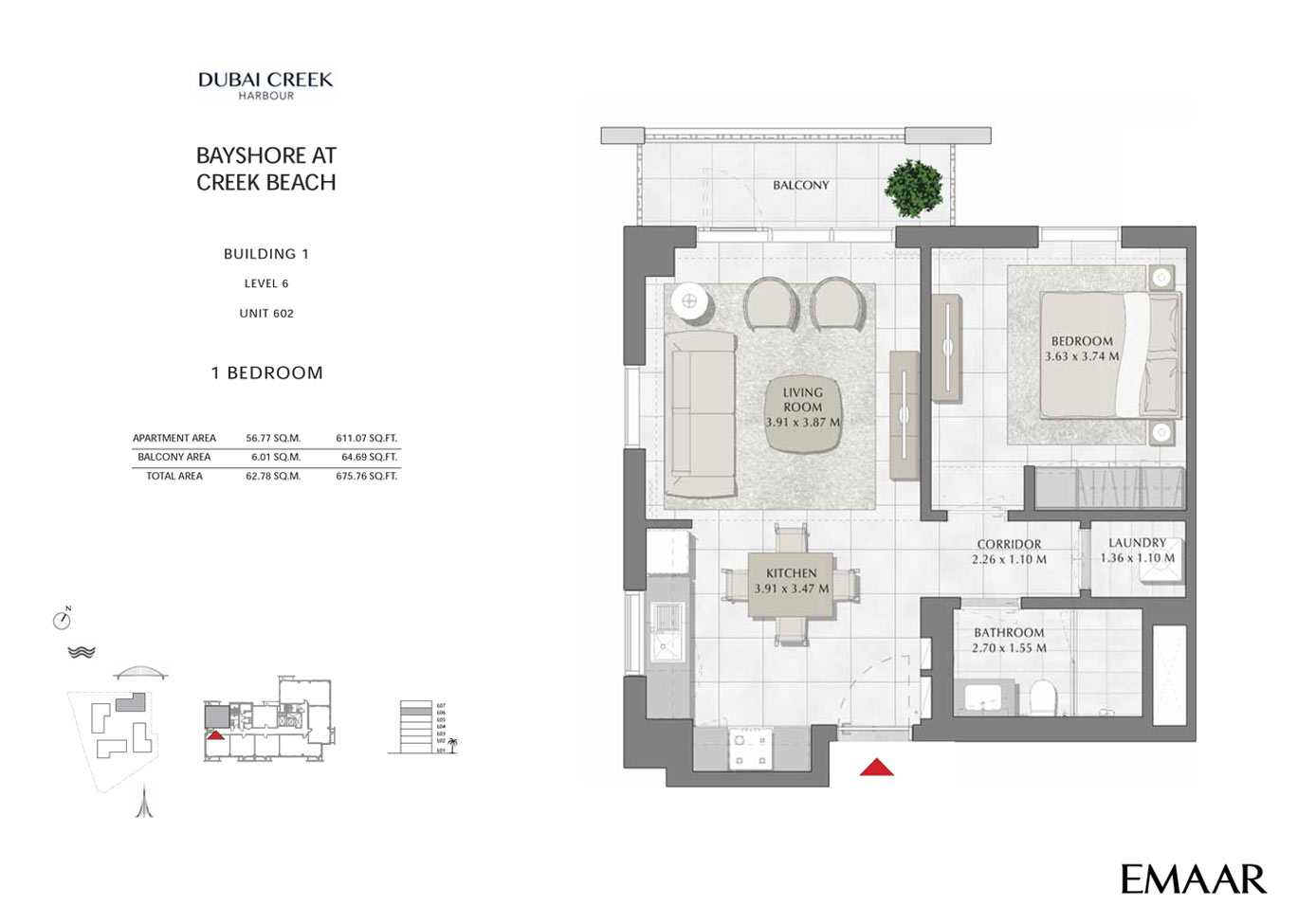 Bayshore is a waterfront lifestyle development with 1, 2, and 3-bedroom apartments available at Creek Beach in Dubai Creek Harbour. It is a masterful construction by renowned Emaar Properties. The purpose-built social hubs with their peaceful calm in the Ras Al Khor Wildlife Sanctuary area are where you can dine, enjoy, and sail from these tastefully constructed apartments with a wonderful view of Dubai Creek Tower.
