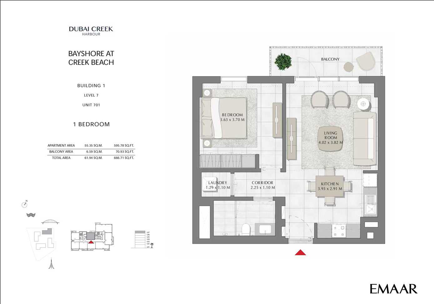 You can walk to the pure white beach while enjoying views of Dubai Creek Marina thanks to this new building. Bayshore Apartments by Emaar offer a stress-free lifestyle atmosphere with a sense of peace because of their breathtaking location. Residents may easily access Creek Beach and Creek Canal from the area, while Creek Marina is only a 5-minute walk away.