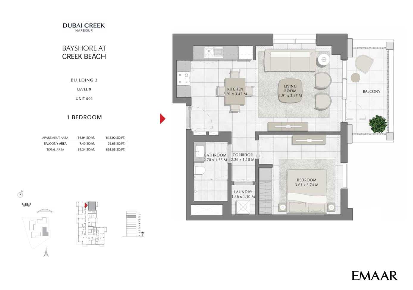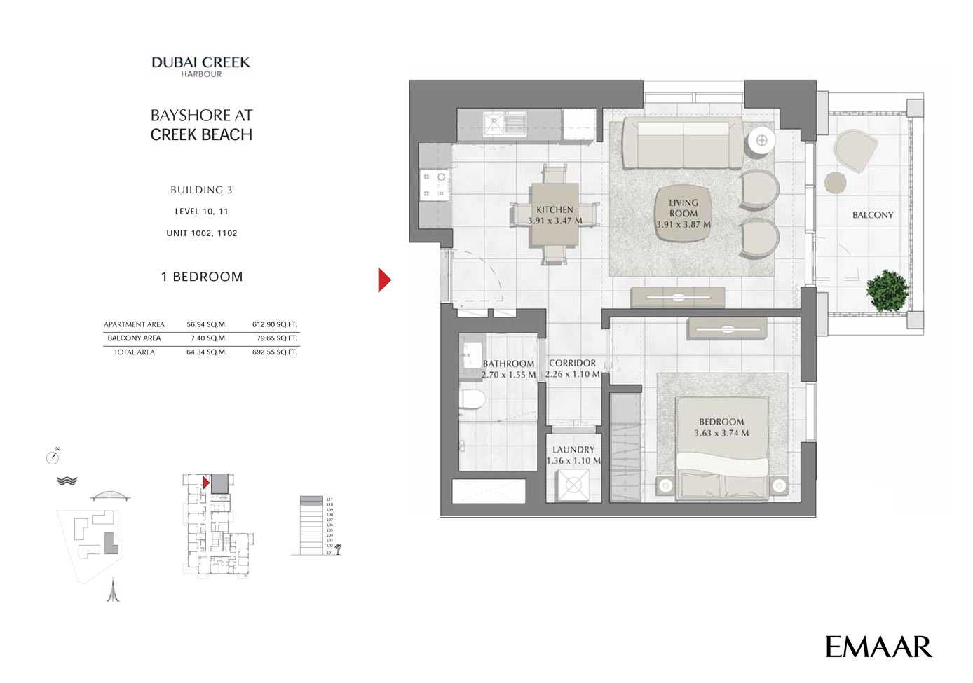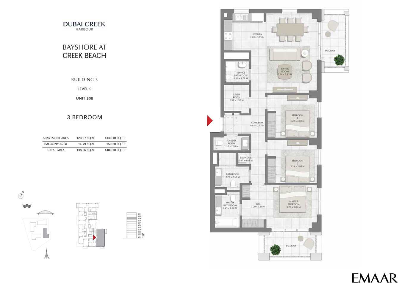 Bayshore is a waterfront lifestyle development with 1, 2, and 3-bedroom apartments available at Creek Beach in Dubai Creek Harbour. It is a masterful construction by renowned Emaar Properties. The purpose-built social hubs with their peaceful calm in the Ras Al Khor Wildlife Sanctuary area are where you can dine, enjoy, and sail from these tastefully constructed apartments with a wonderful view of Dubai Creek Tower.