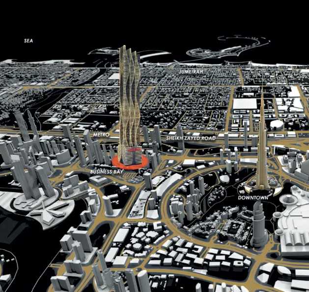 Prime location in Business Bay, with quick access to Sheikh Zayed Road, Downtown Dubai, and Business Bay Metro Station.