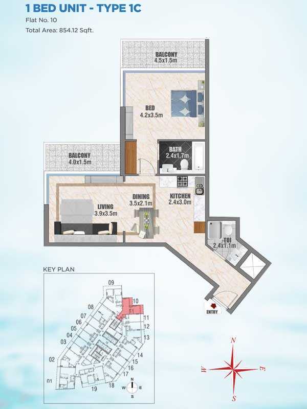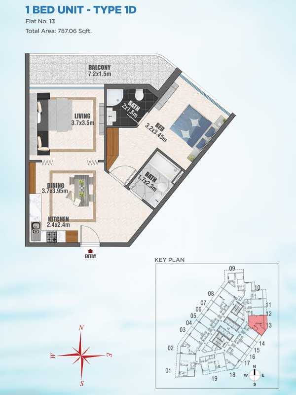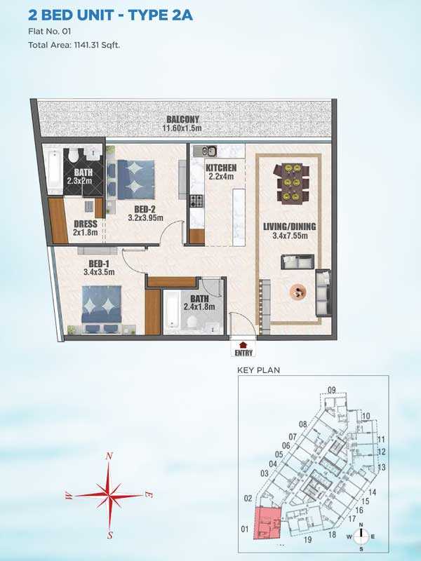 Bayz by Danube introduces a 2-bedroom apartment with a wide balcony, 2 bathrooms, a living and dining room and a kitchen.