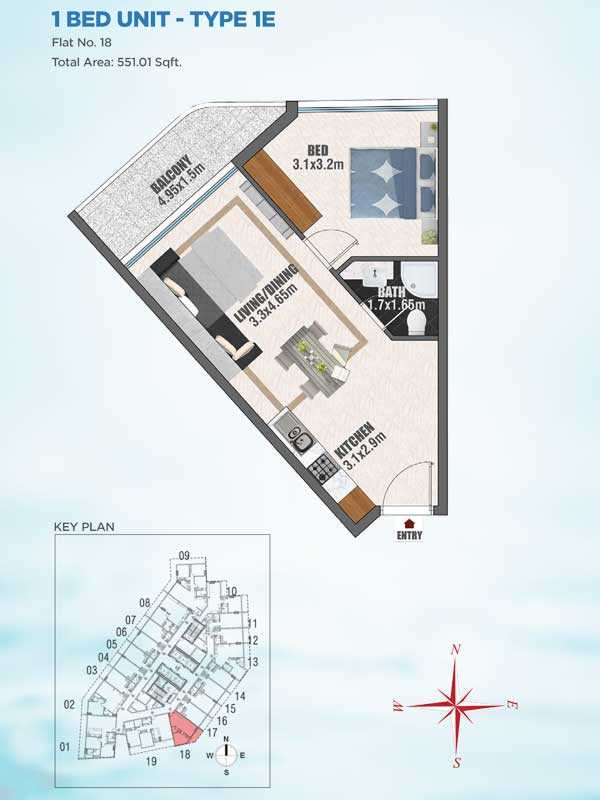 Bayz by Danube introduces a 3-bedroom apartment with 2 bathrooms, a wide balcony, a dining and living room and a kitchen.