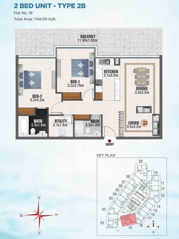 Bayz by the Danube introduces a 2-bedroom apartment with 2 bathrooms, a dining room, a living room, a wide balcony, and a kitchen.