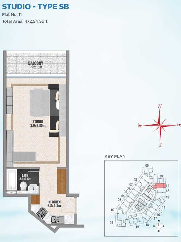Bayz by Danube introduces Studio Apartments Type SA on Floor Levels 3–7, 12, 14, and 17 with 1 bathroom.