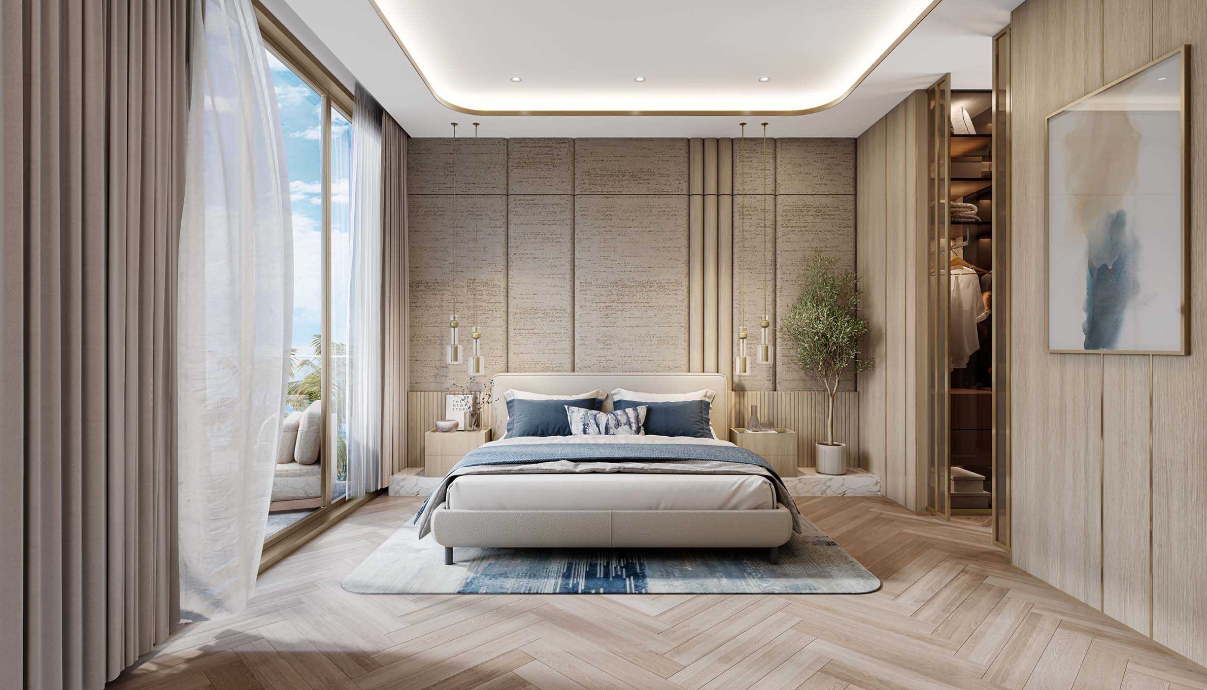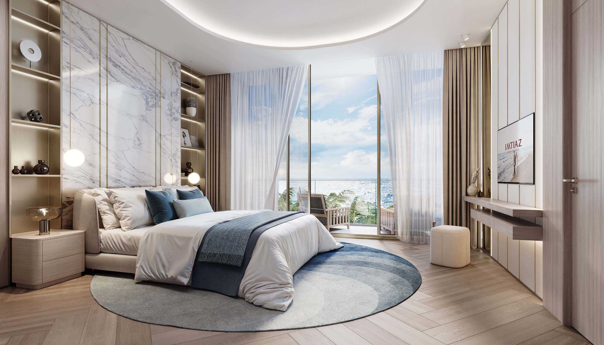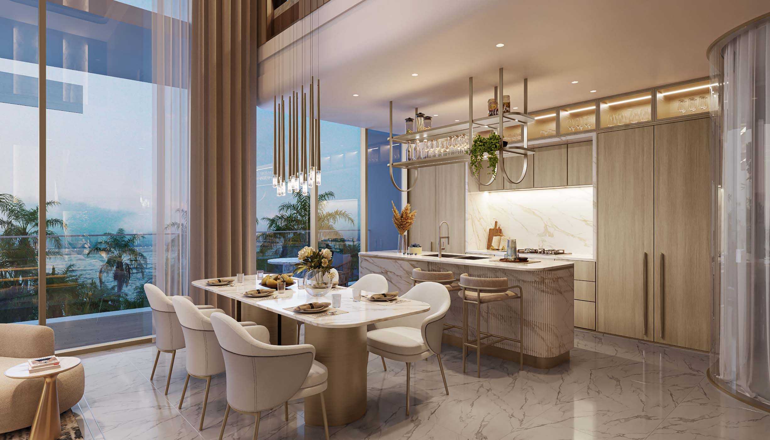 As a tribute to architectural magnificence, modern architecture coexists harmoniously with the surrounding landscape. The property is a twelfth-story structure with a liquid glass façade that reflects the beauty of the Arabian Gulf seas with receding curves that lead down to expansive glass expanses. In order to provide a seamless transition between interior and outdoor spaces, each home is positioned to optimize panoramic views and natural light. In addition to being visually appealing, the building's architecture makes a strong statement about sustainability and environmental friendliness.
