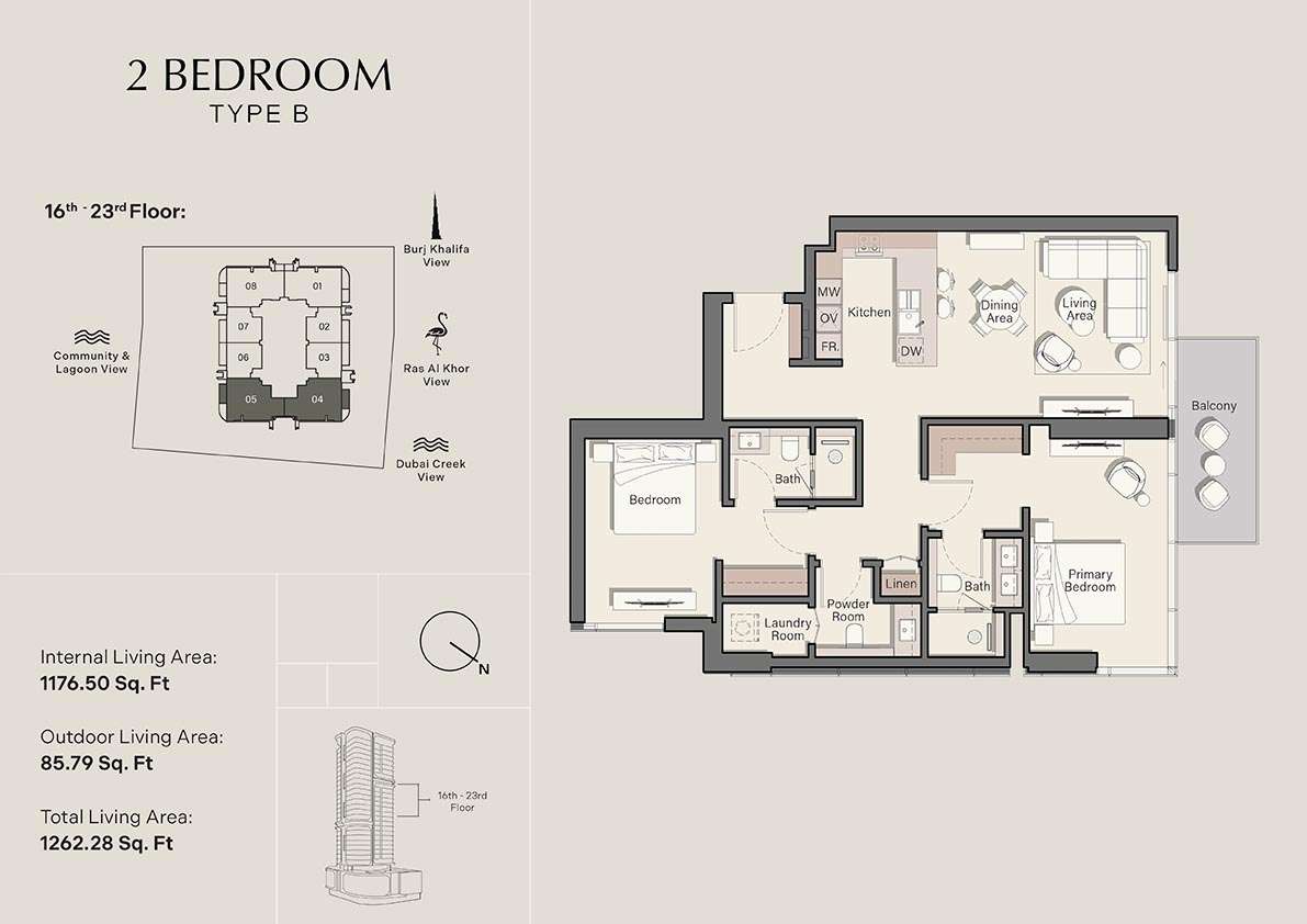 With prime and strategic location at Mohammed Bin Rashid City (MBR), as being next to the crystal lagoon and Ras Al Khor Wildlife Sanctuary. The development is seamlessly connected to the major arteries and urban destinations of Dubai. Residents would have a short drive or minutes to everything plus proximity to the proposed metro line, Burj Khalifa and Dubai Mall, Meydan Racecourse, DIFC, Dubai International Airport and cultural landmarks like the Museum of the Future within easy reach. This rare adjacency - nature on one side, downtown vitality on the other - creates a genuinely family-friendly, self-sustained community while outdoor promenades, retail conveniences and schools are within the everyday orbit.