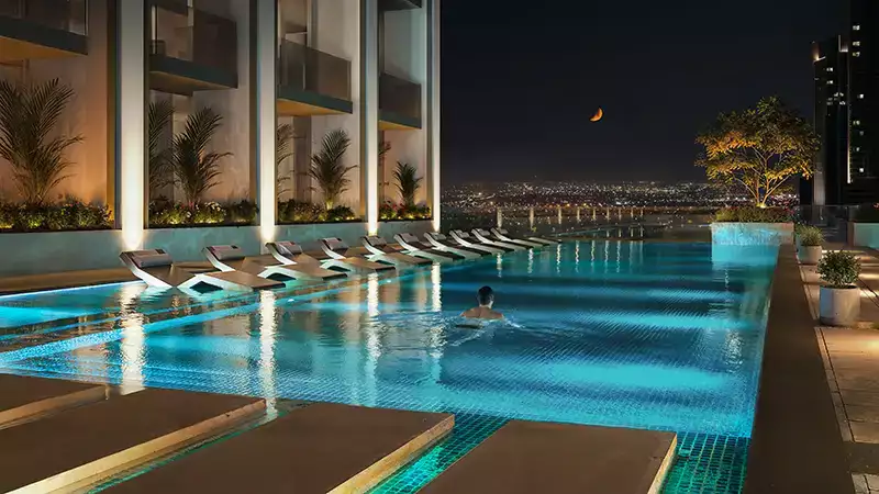 - Aquatics: Infinity Horizon pool, sky pool, children’s pool, and a sky garden with a jacuzzi.