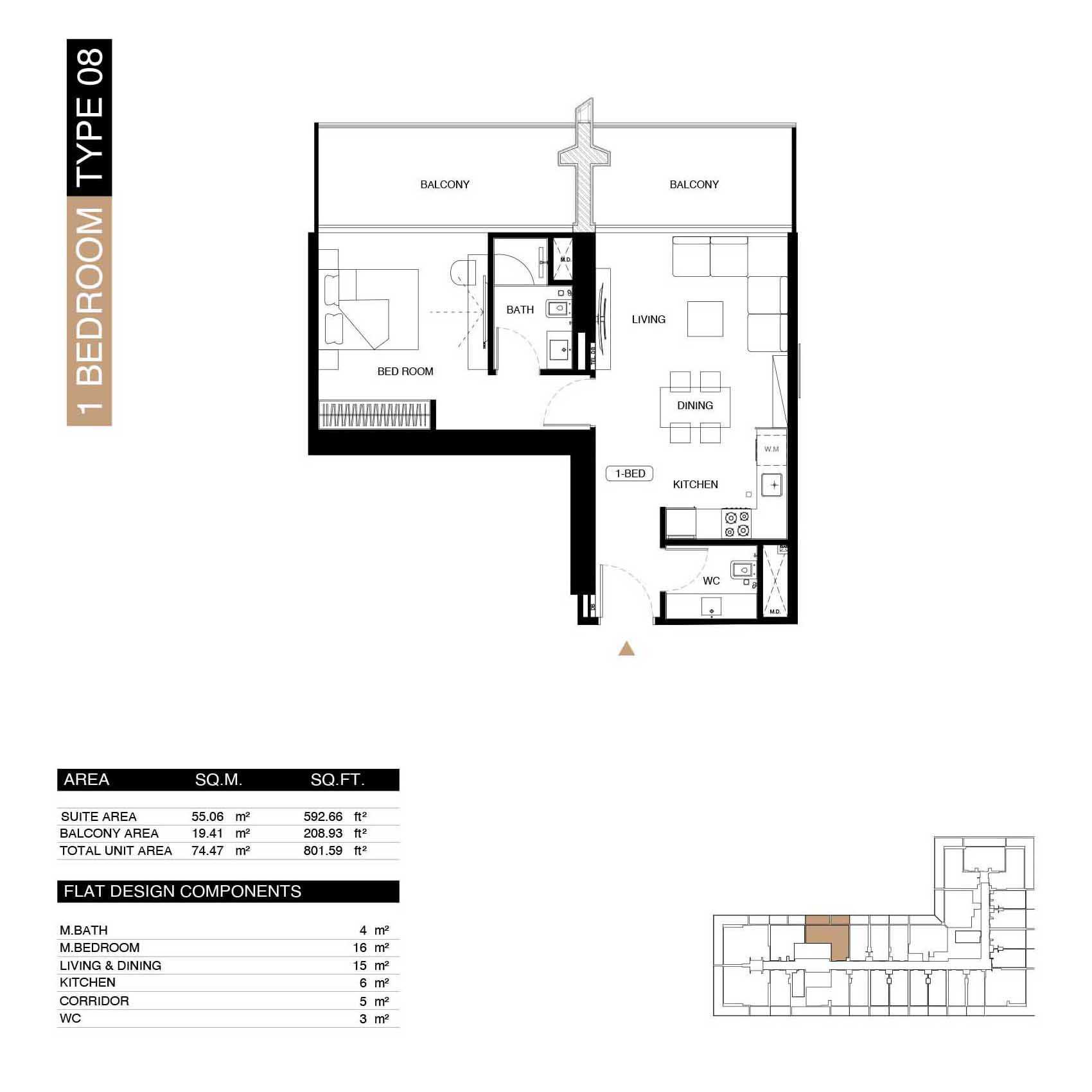 – Private Balconies: Each residence includes a balcony providing personal outdoor space.