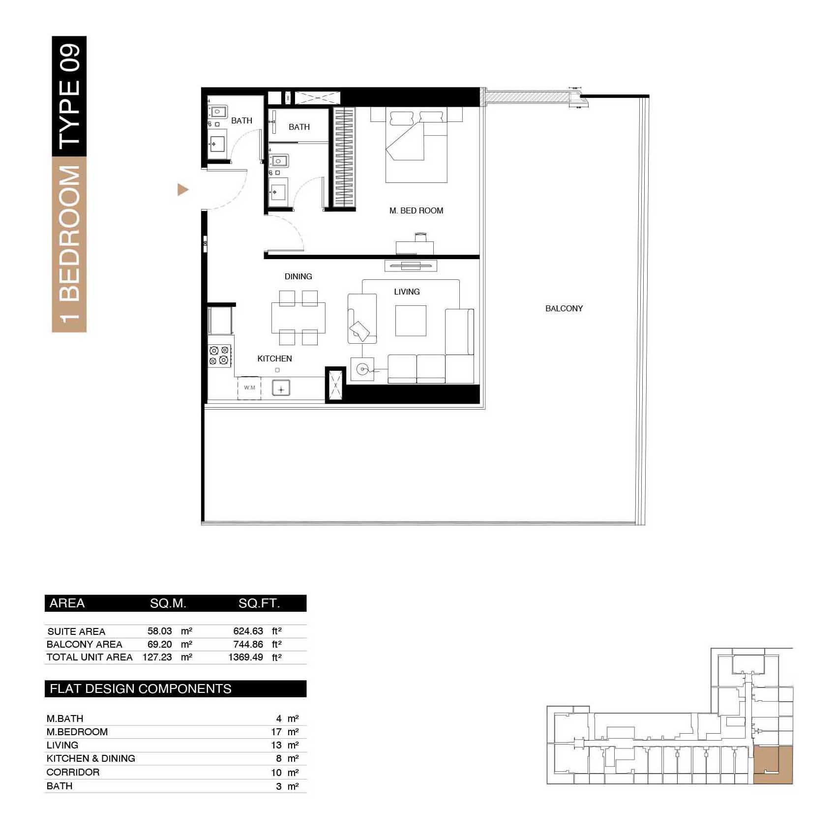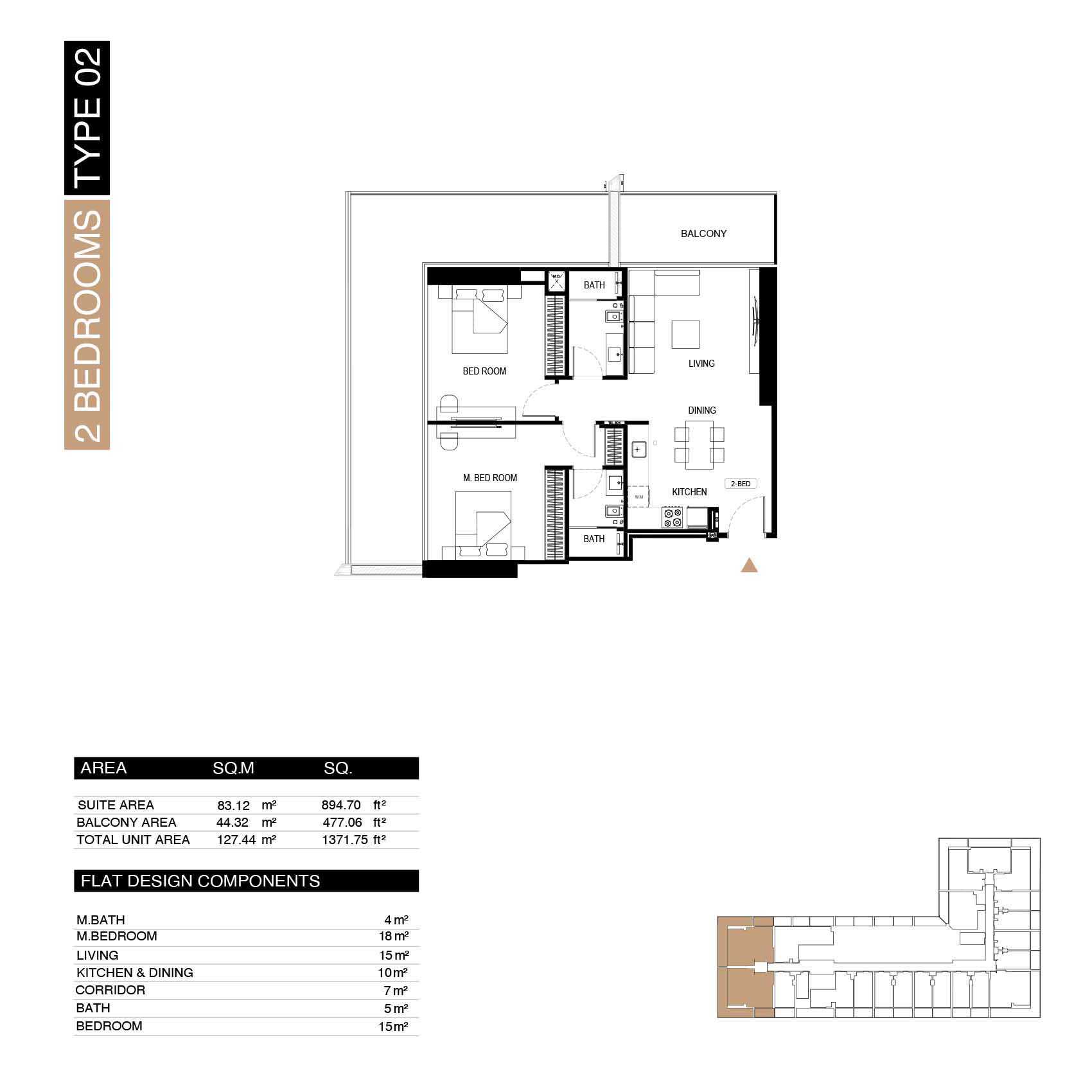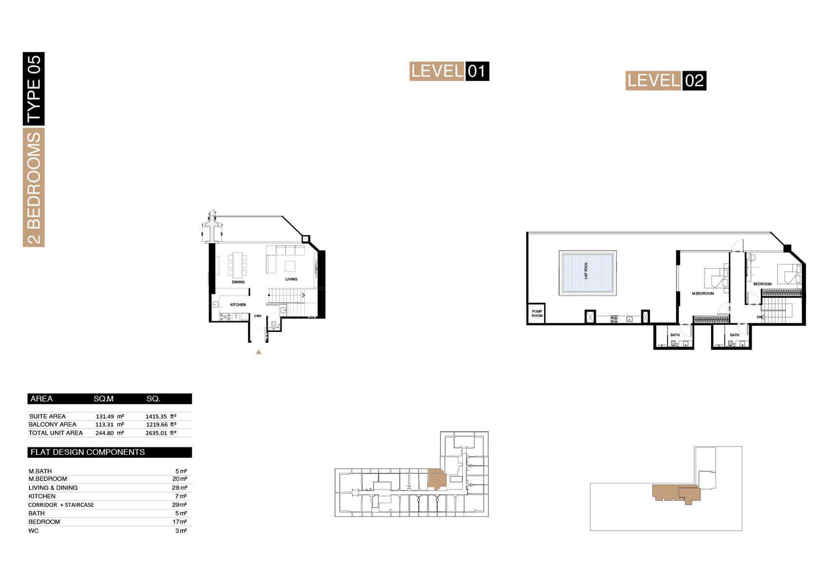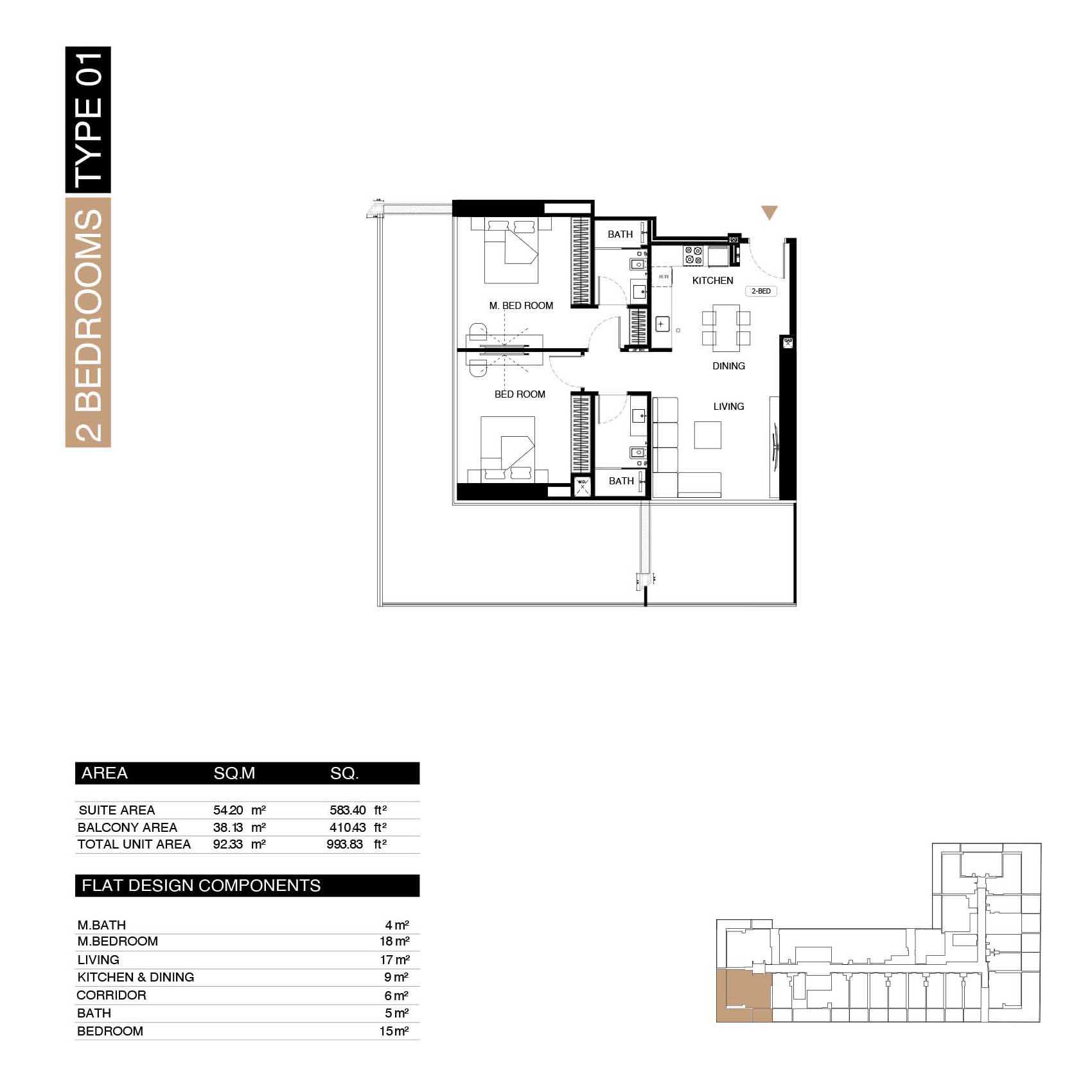 – Finishes: Premium materials—porcelain flooring, stone countertops, top-tier cabinetry.