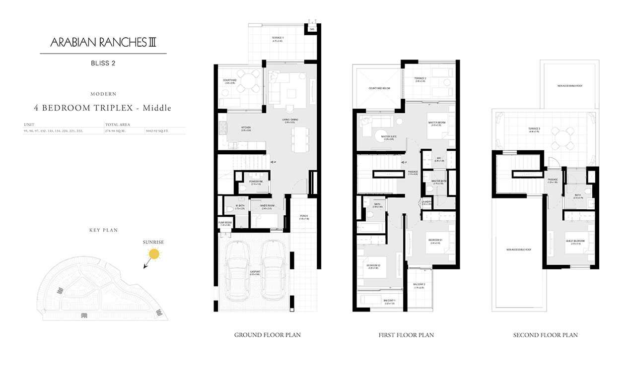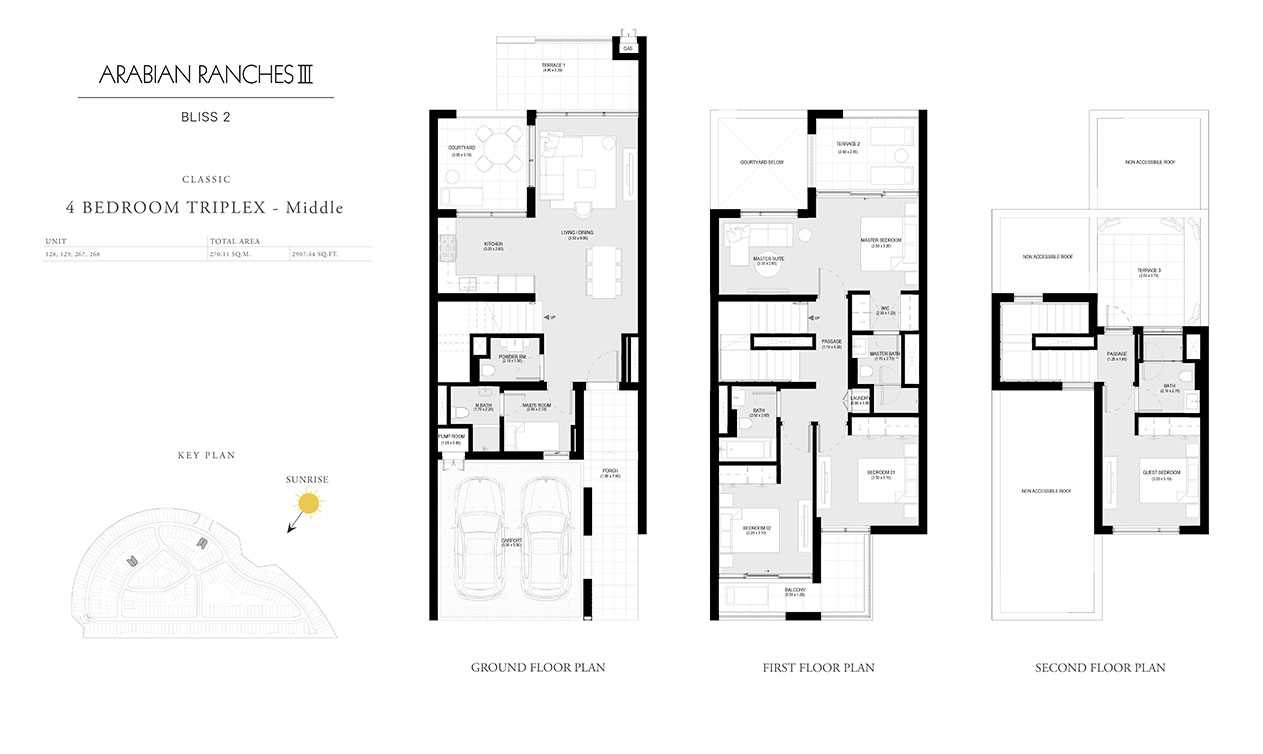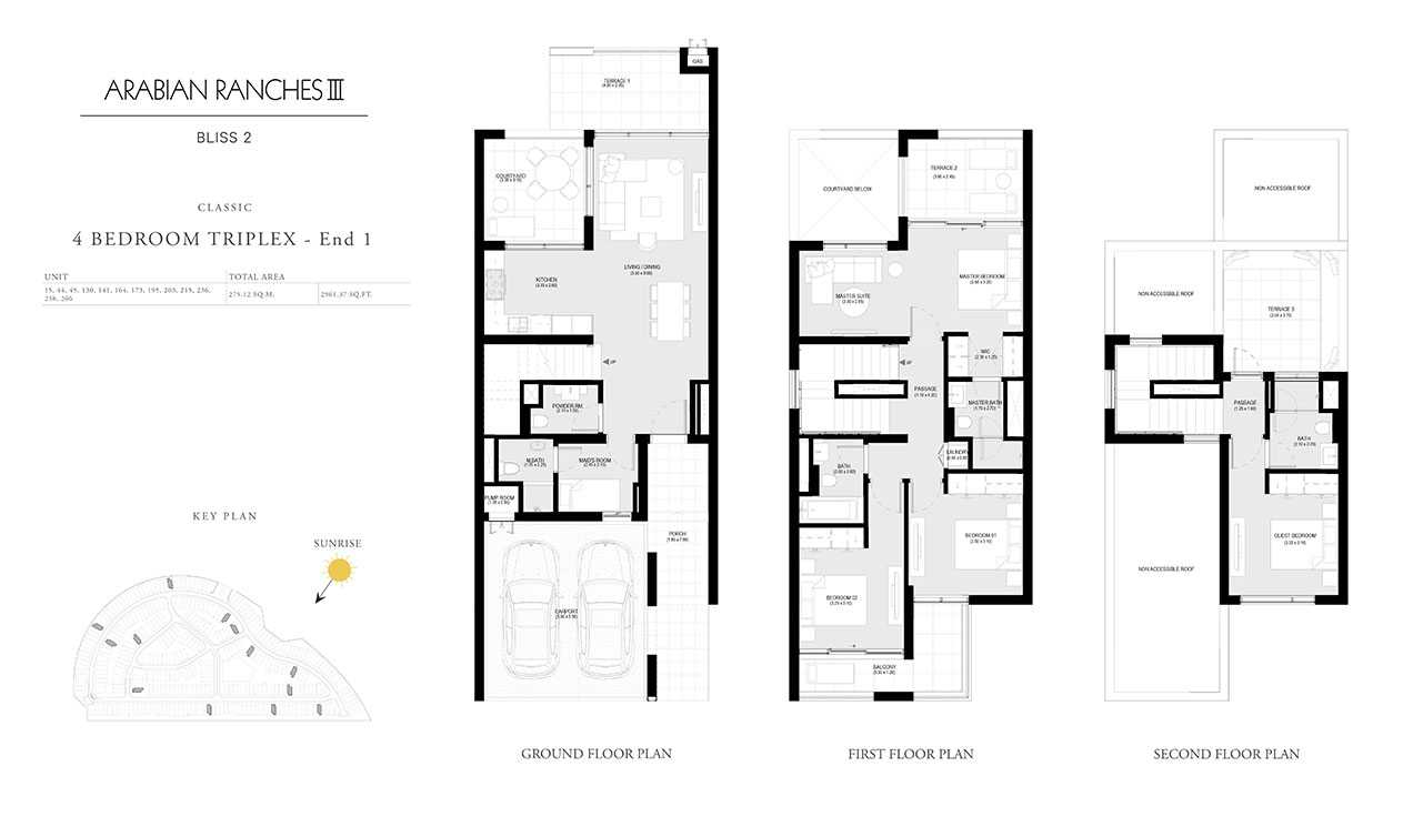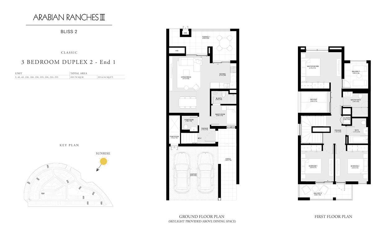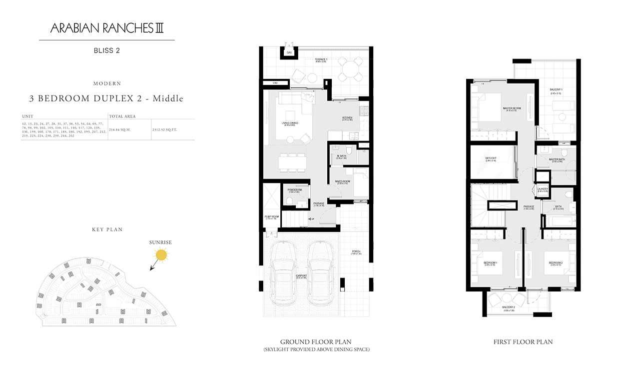 Ground Floor: Carport Maid Room Maid Bathroom Powder Living Room Kitchen/Dining TerraceFirst Floor Balcony 1 Master Bedroom WIC Master Bathroom Laundry Bedroom 02 Bathroom 02 Bedroom 03 Bathroom 03 Balcony 2
