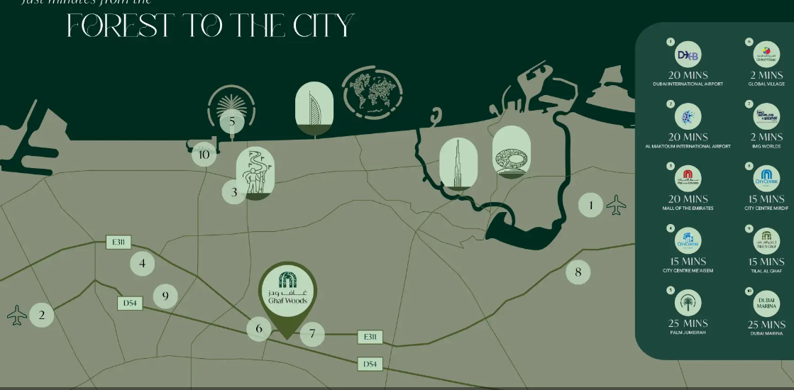 Set within the heart of Ghaf Woods, this unique community creates an environment where nature is at the forefront. With more trees than residents and over 20 diverse fauna species, it offers a refreshing atmosphere that encourages relaxation and balance. While the surroundings promote peace and wellness, the development remains closely connected to Dubai’s bustling urban attractions, offering residents both seclusion and convenience. Outdoor leisure spaces, wellness zones, and high-end facilities enhance the living experience, making it an ideal destination for modern families and professionals alike.