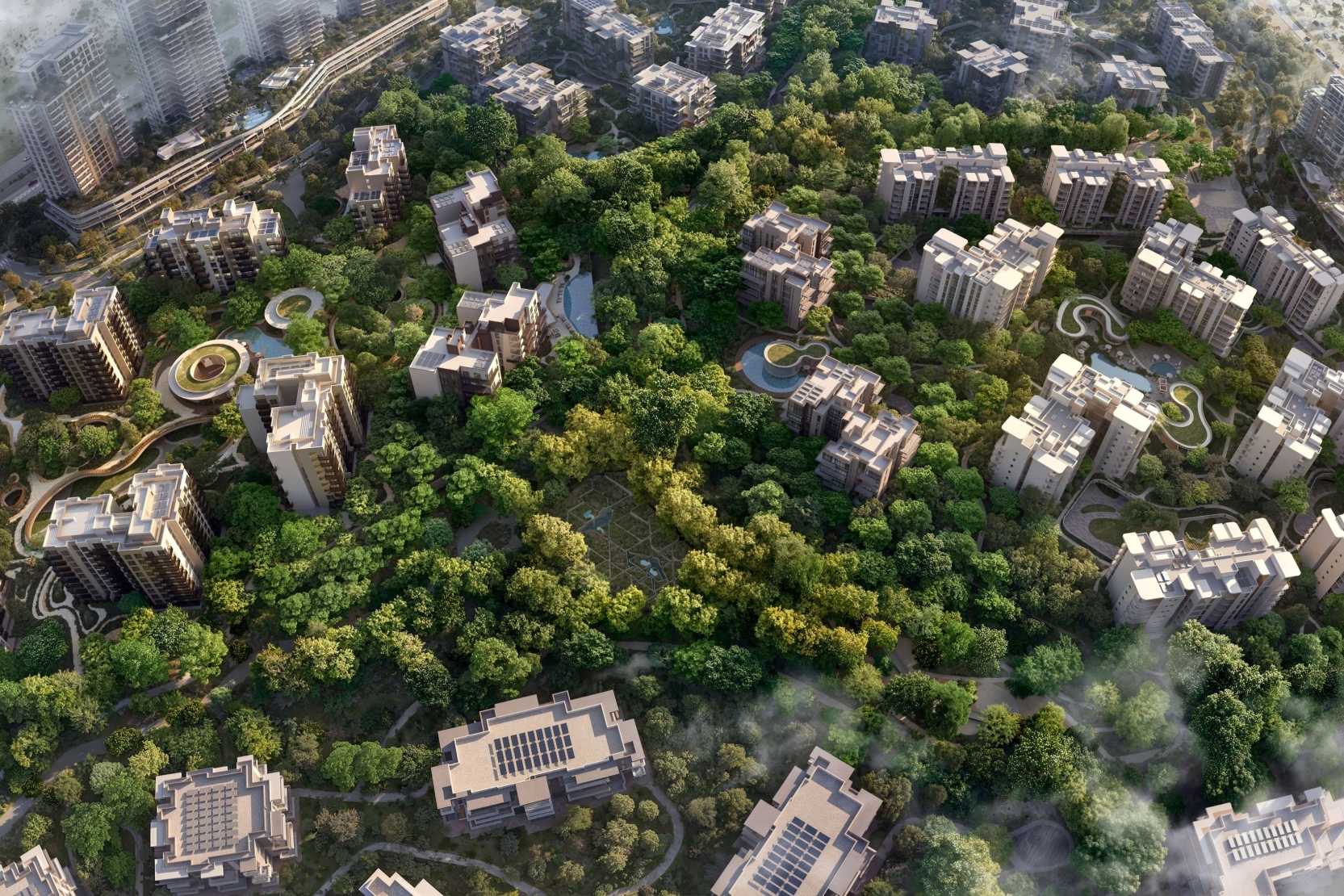 - To encourage a healthy and peaceful living environment, every element is designed with eco-friendly materials, wellness gardens, and outdoor gathering areas.