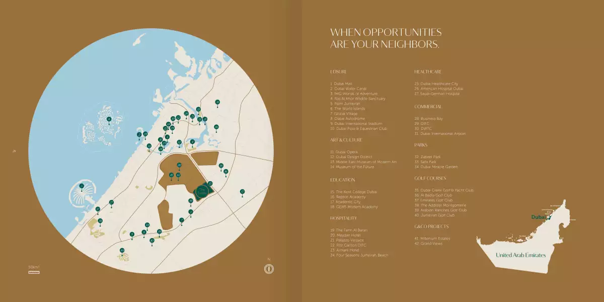 Situated close to Meydan One Mall—the future retail and entertainment hub of Dubai—residents will enjoy access to over 1,200 retail outlets, 200 dining options, a gigantic indoor aquarium, and attractions like Kidzania, making it an ideal place for both lifestyle and leisure.