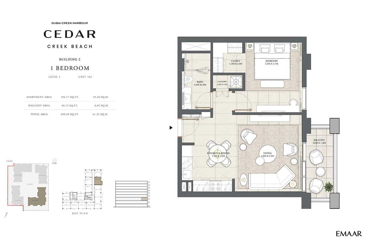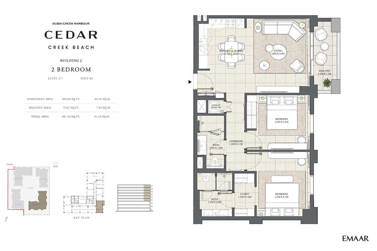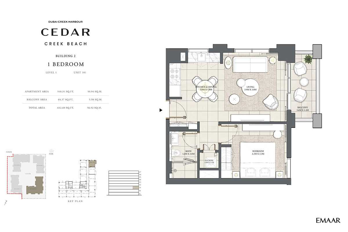 At Dubai Creek Harbour (DCH), Emaar Properties' newest residential complex, Cedar at Creek Beach, offers chic design apartments. With one of the most premium addresses in Dubai and breathtaking views of the skylines, the unique design project offers state-of-the-art design infrastructure. The waterfront promenade, which is pedestrian-friendly, is one of Dubai Creek Harbour's main characteristics. With its array of eateries, cafes, and retail establishments, the promenade is the ideal spot to unwind and enjoy the breathtaking views of Dubai Creek.