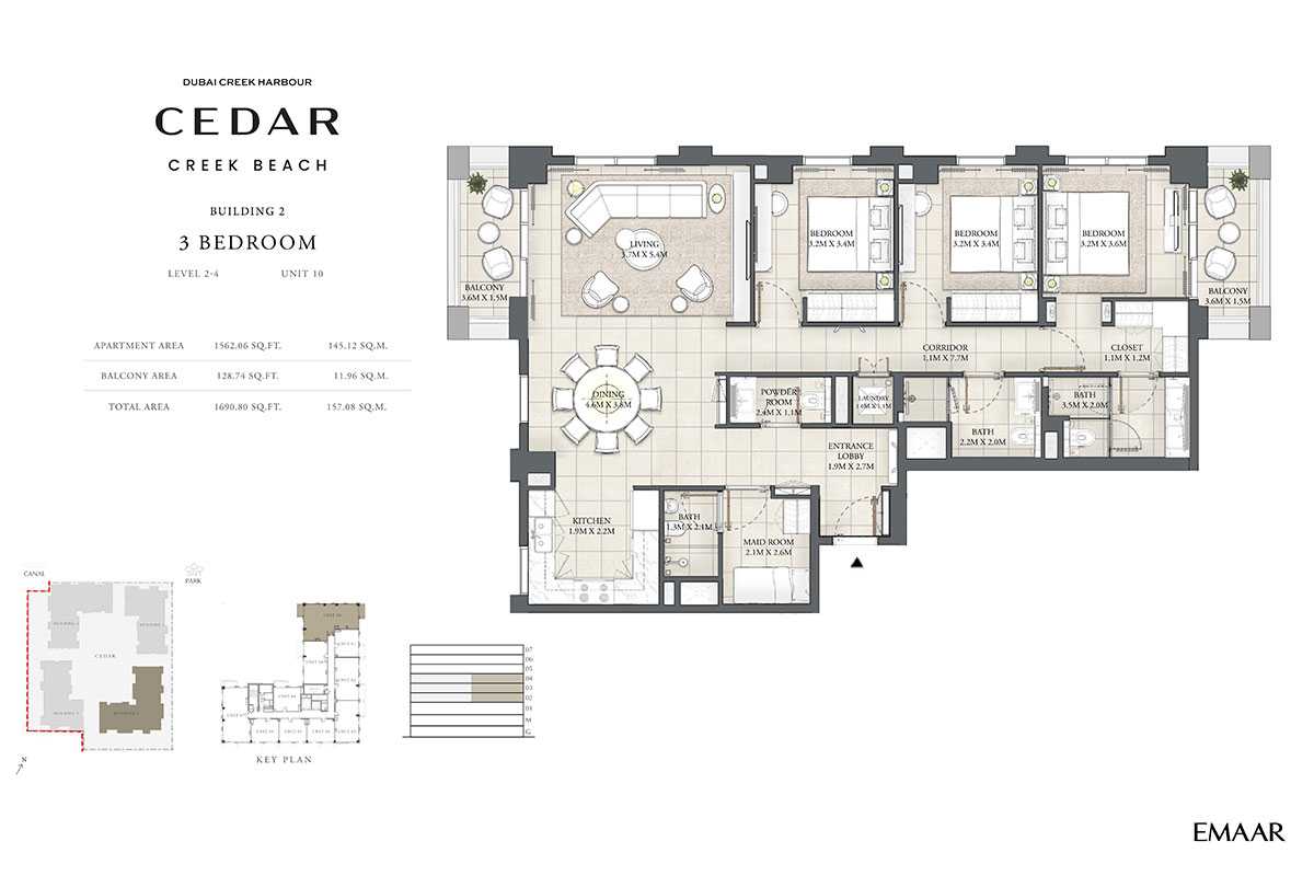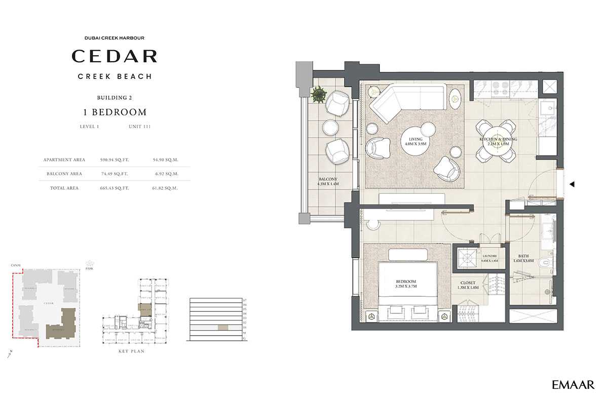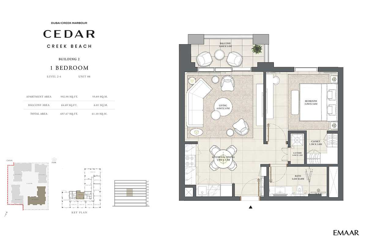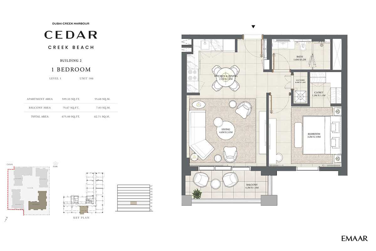 At Dubai Creek Harbour (DCH), Emaar Properties' newest residential complex, Cedar at Creek Beach, offers chic design apartments. With one of the most premium addresses in Dubai and breathtaking views of the skylines, the unique design project offers state-of-the-art design infrastructure. The waterfront promenade, which is pedestrian-friendly, is one of Dubai Creek Harbour's main characteristics. With its array of eateries, cafes, and retail establishments, the promenade is the ideal spot to unwind and enjoy the breathtaking views of Dubai Creek.