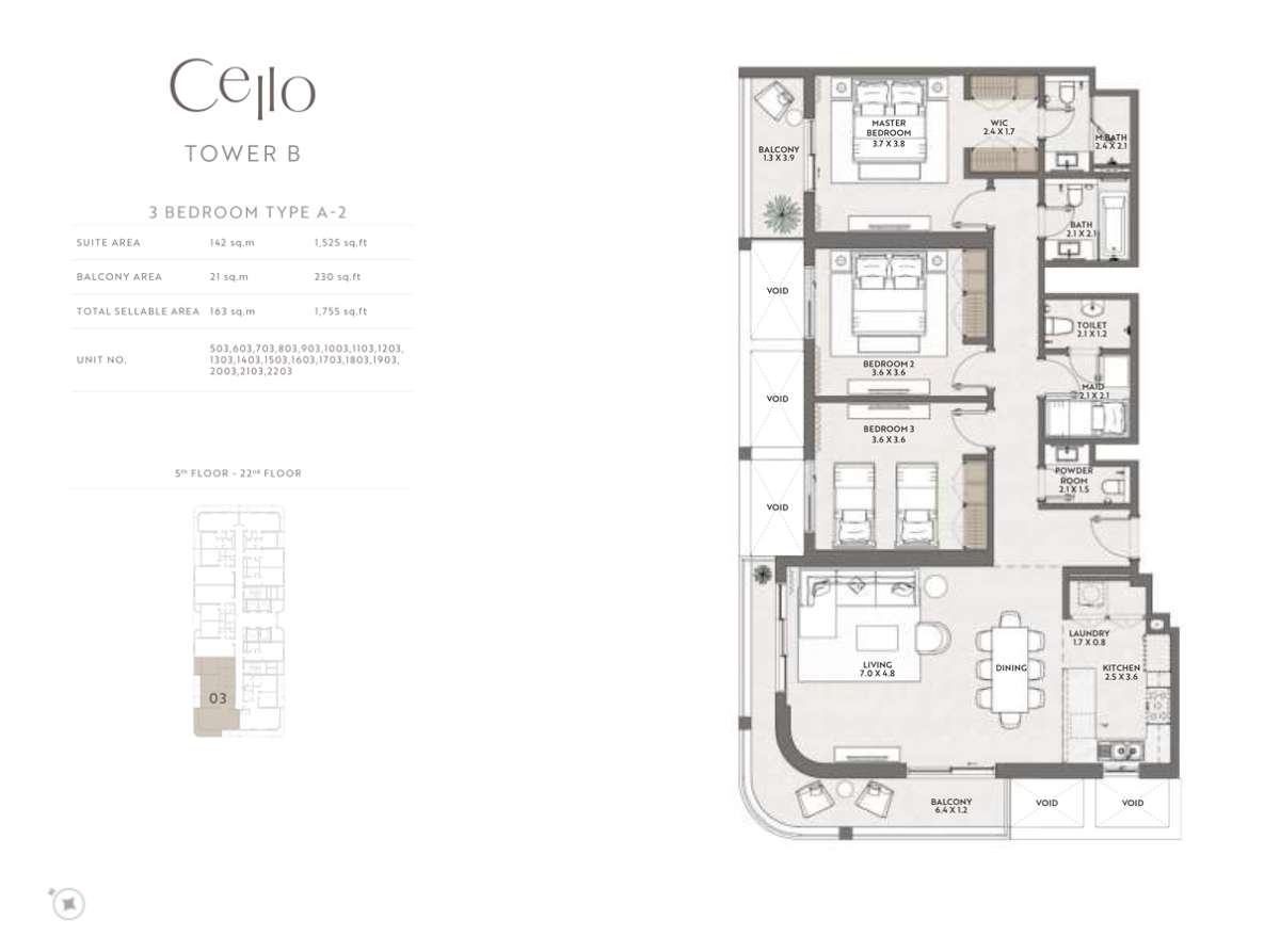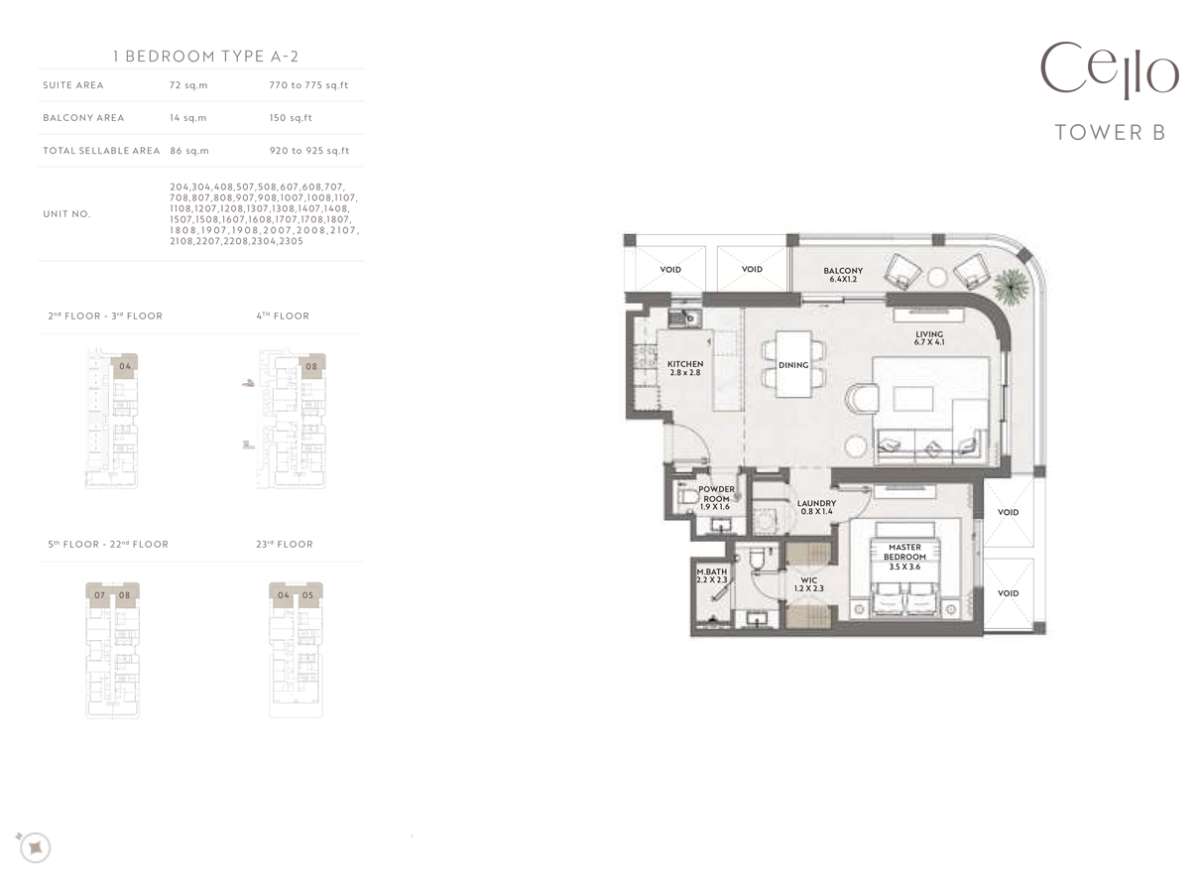 Every residence at Cello boasts chic interiors, high-quality fittings, and calming color palettes, offering a seamless fusion of style, comfort, and functionality. Expansive layouts and panoramic balconies enhance the sense of space while bringing in natural light and stunning views.