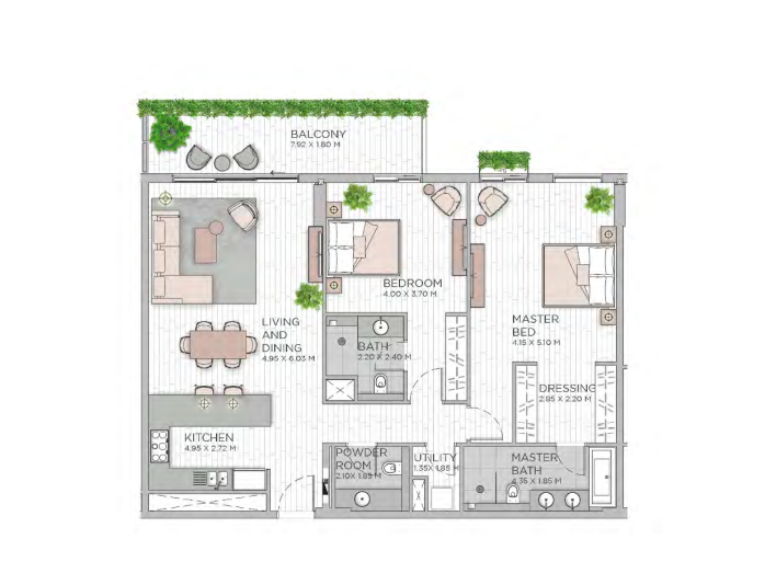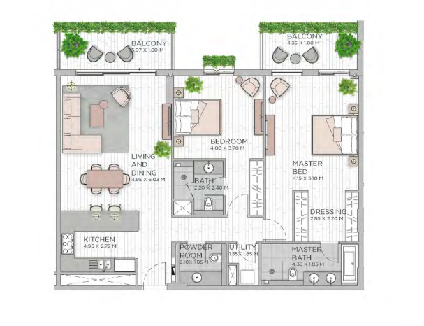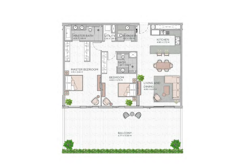 Balcony, Powder Room and Utility area